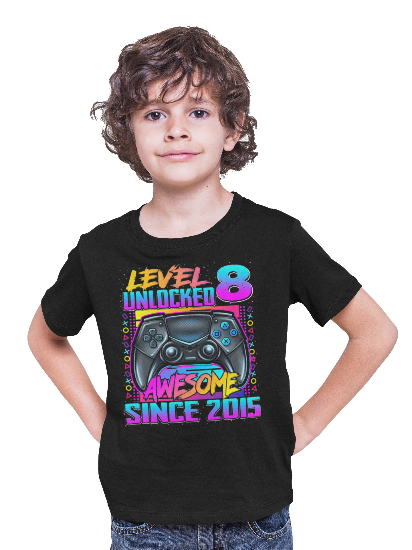 DZIECIĘCA KOSZULKA NA 8 URODZINY LEVEL 8 UNLOCKED 2015