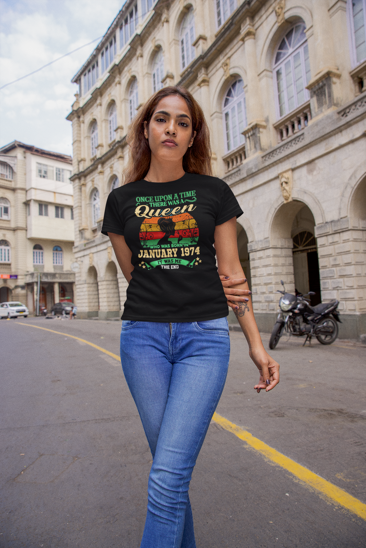 DAMSKA KOSZULKA PREZENT NA 50 URODZINY KRÓLOWA URODZONA W STYCZNIU 1974 TORBA GRATIS