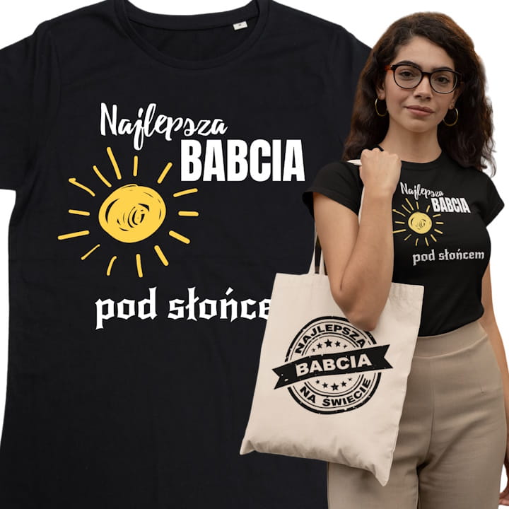 DAMSKA KOSZULKA PREZENT NA DZIEŃ BABCI NAJLEPSZA BABCIA POD SŁOŃCEM TORBA GRATIS