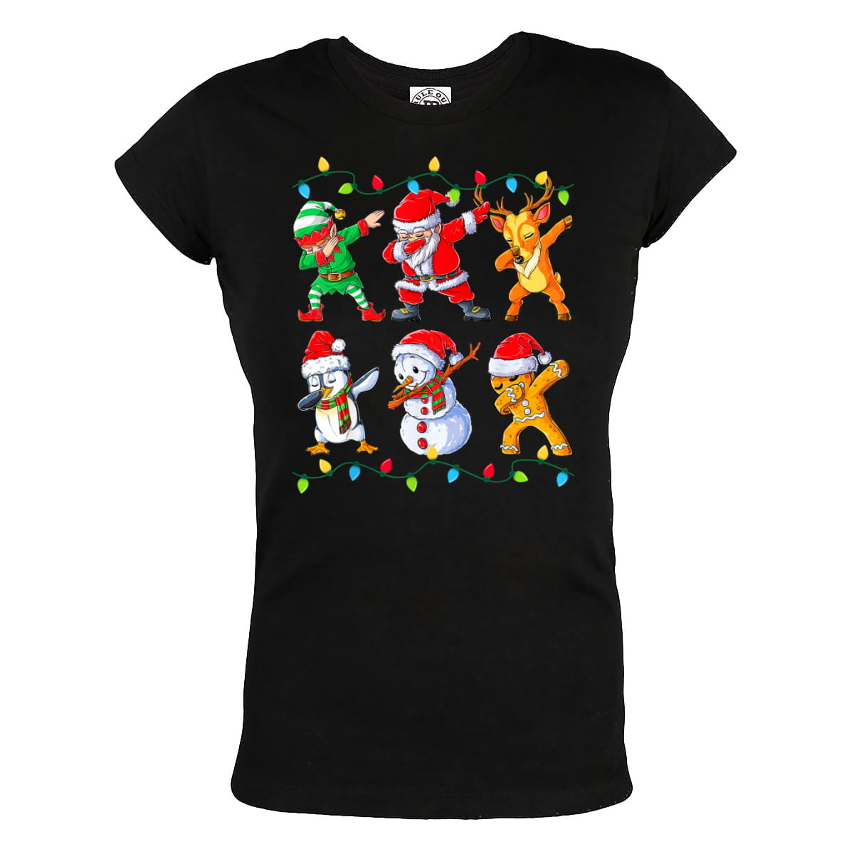 DAMSKA KOSZULKA ŚWIĄTECZNA NA ŚWIĘTA EKIPA ŚWIĘTEGO MIKOŁAJA DABBING LAMPKI