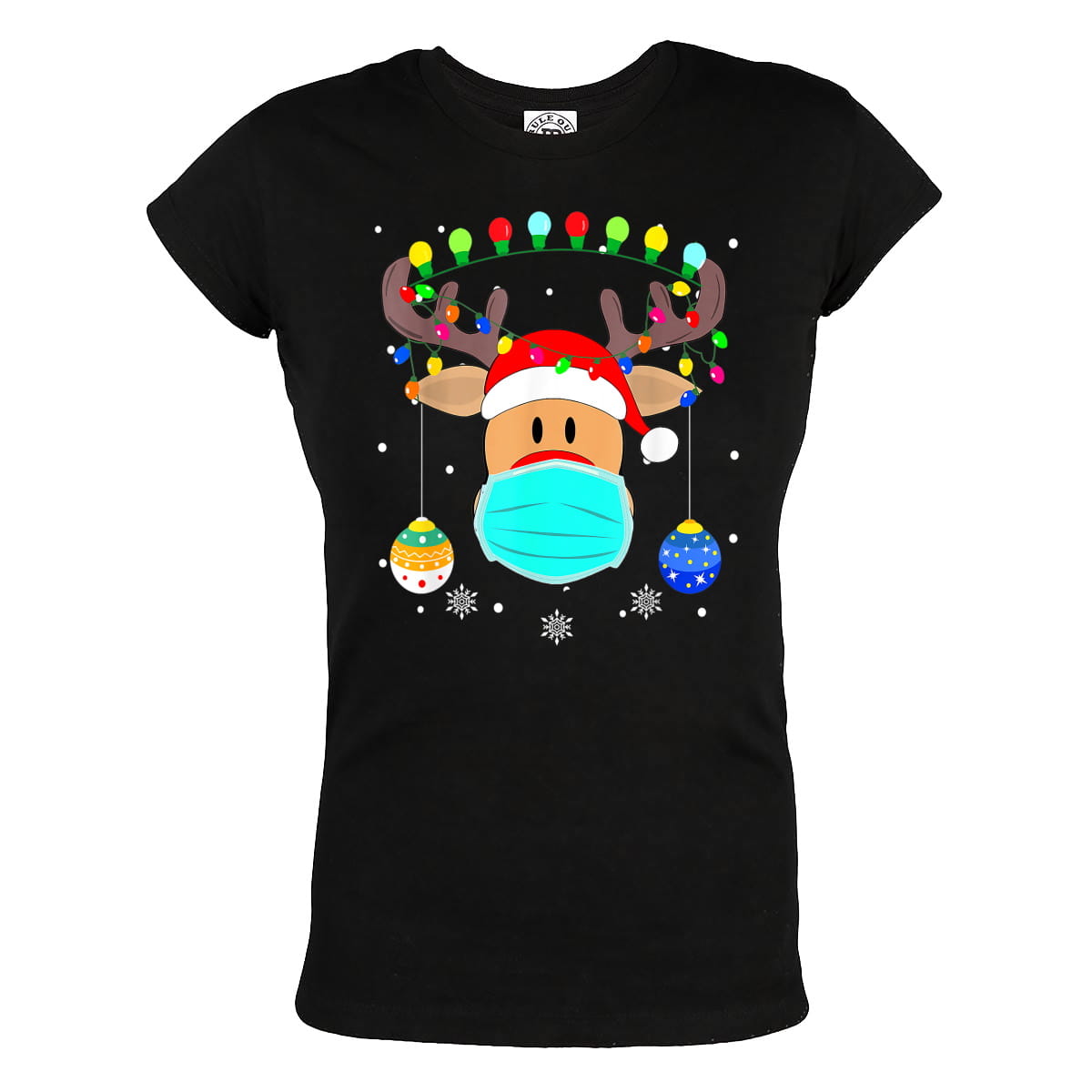 DAMSKA KOSZULKA ŚWIĄTECZNA NA ŚWIĘTA RENIFER MASKA BOMBKI LAMPKI