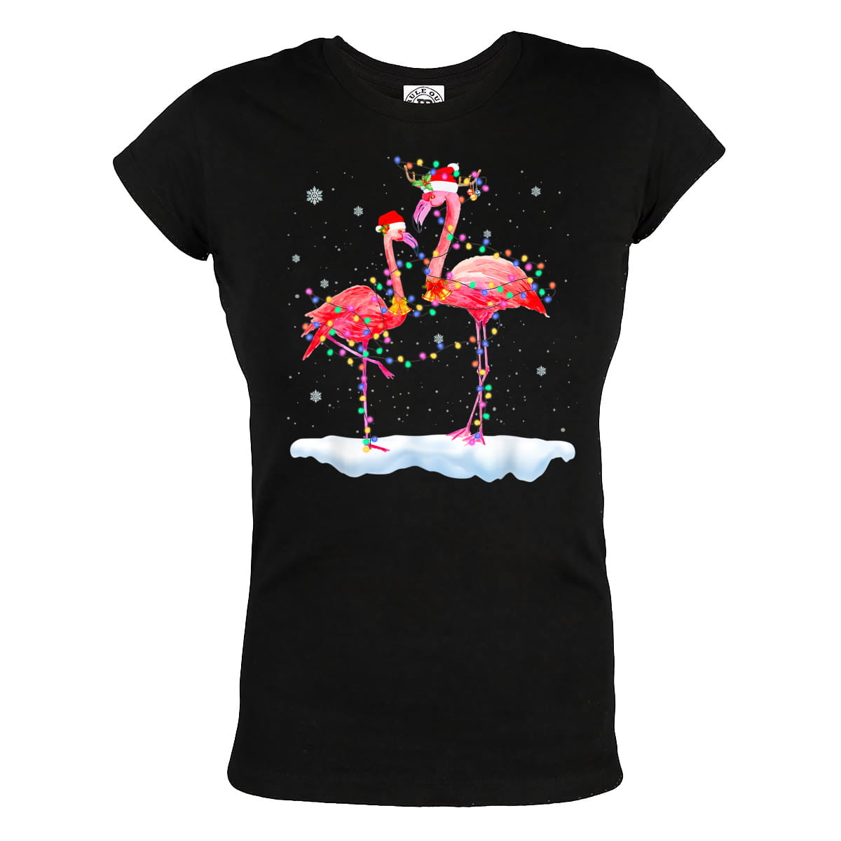 DAMSKA KOSZULKA ŚWIĄTECZNA NA ŚWIĘTA ŚWIĄTECZNE FLAMINGI ŚNIEG LAMPKI