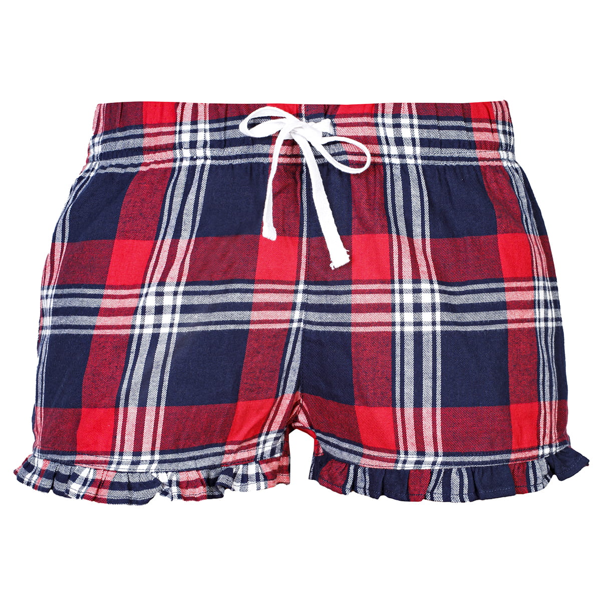 Tkane szorty w szkocką kratę z falbaną u brzegu nogawek