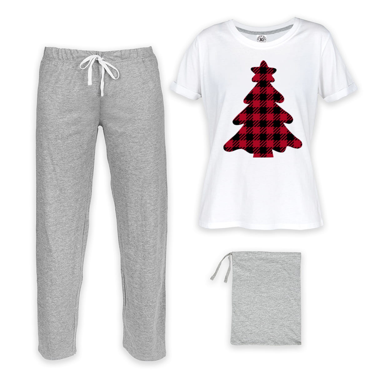 DAMSKA PIŻAMA ŚWIĄTECZNA Z NADRUKIEM CHOINKA W KRATKĘ SZKOCKA KRATA