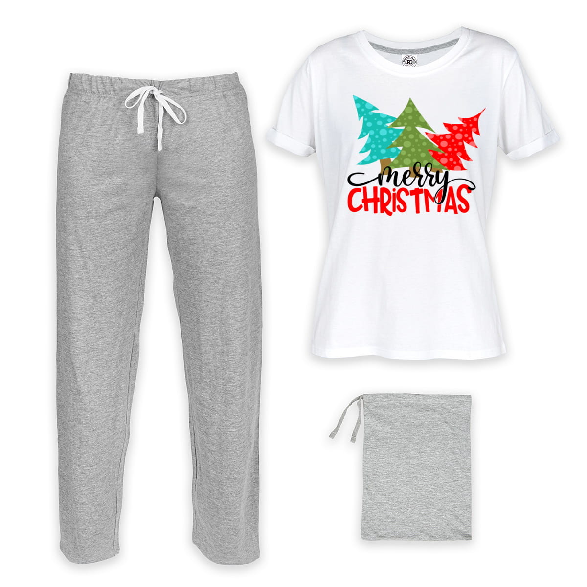 DAMSKA PIŻAMA ŚWIĄTECZNA Z NADRUKIEM CHOINKI MERRY CHRISTMAS