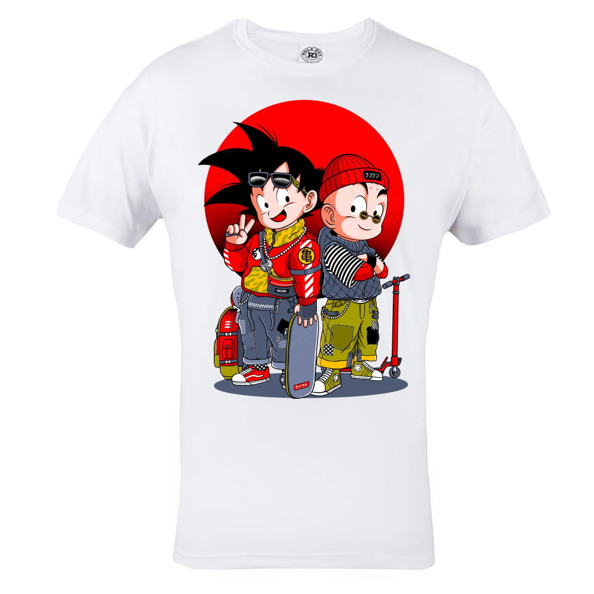 T-shirt dla fana mangi Dragon Ball z młodym Goku i Krilinem.