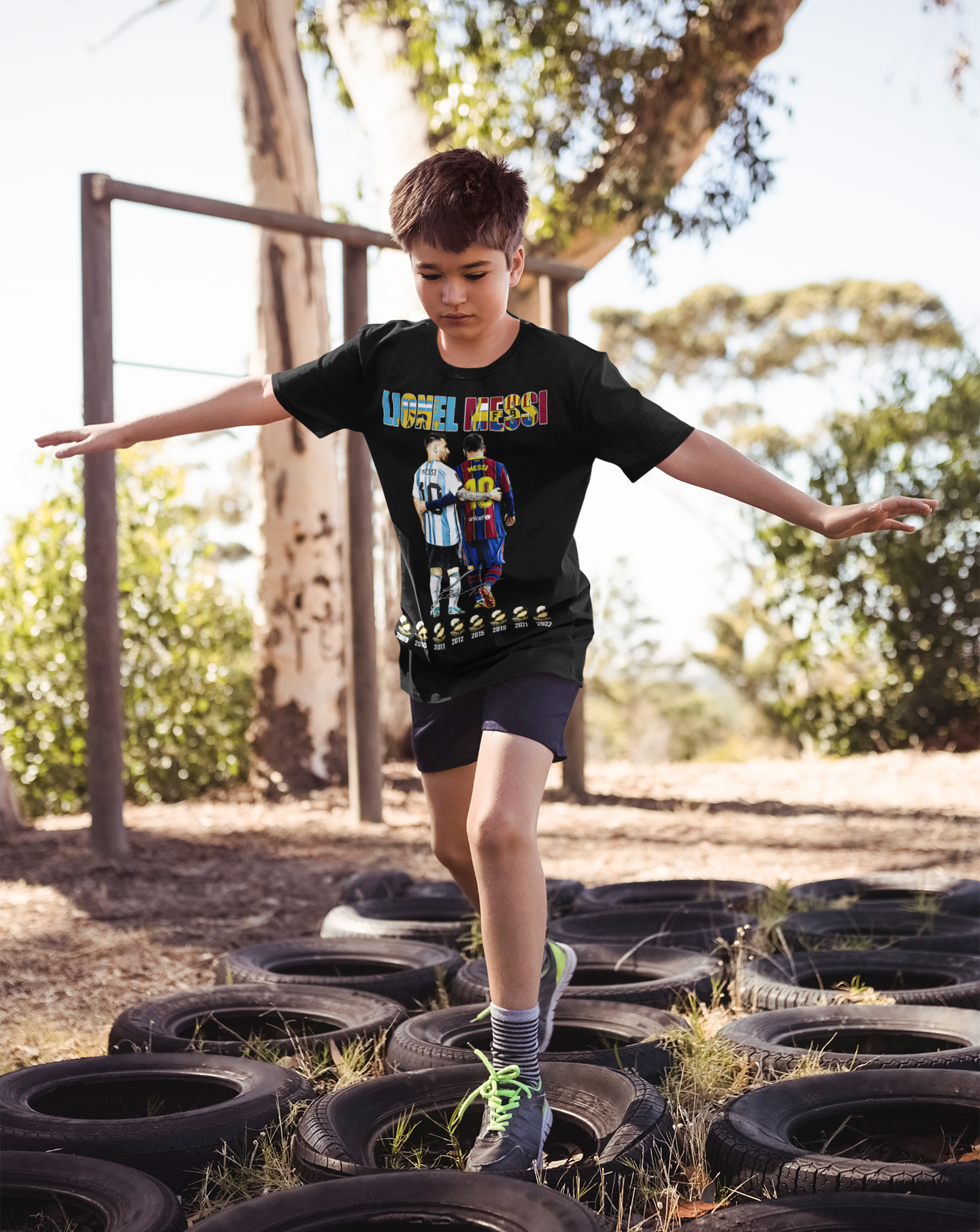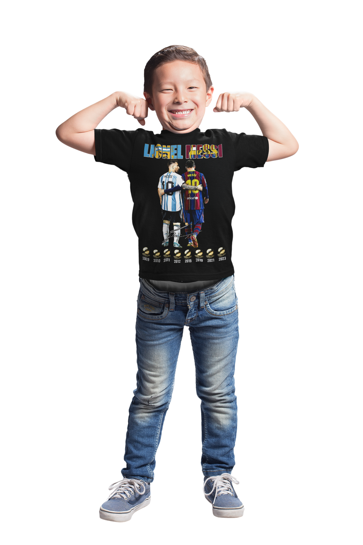 DZIECIĘCA BAWEŁNIANA KOSZULKA NA PREZENT PIŁKA NOŻNA LIONEL MESSI ZŁOTA PIŁKA