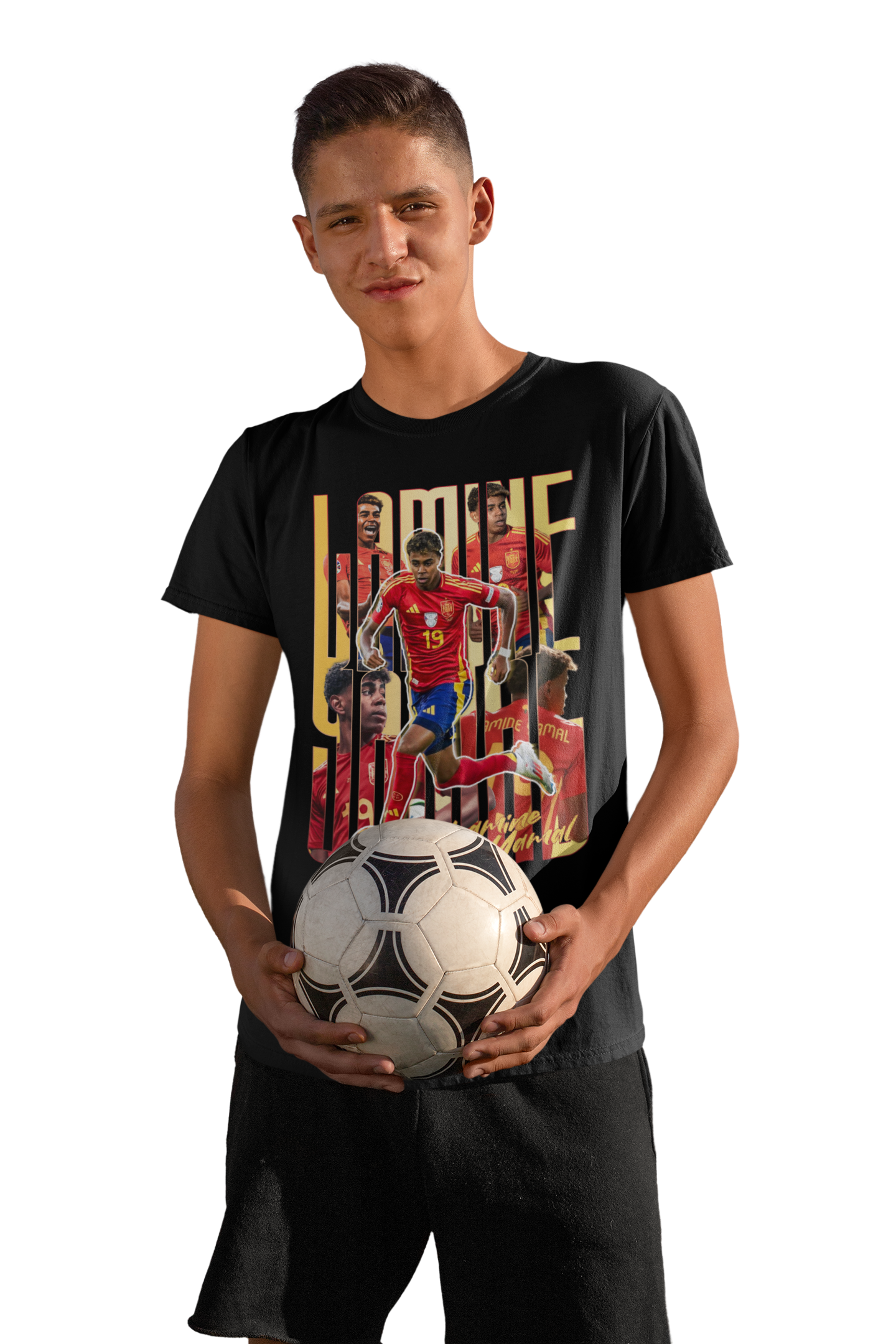 Wyjątkowa koszulka dziecięca z wizerunkiem Lamine’a Yamala to idealny prezent dla każdego fana futbolu i reprezentacji Hiszpanii! Wykonana z wysokiej jakości materiałów, zapewnia komfort noszenia i trwałość, a staranny nadruk podkreśla dynamikę oraz charakter tego niezwykle utalentowanego zawodnika. Dzięki nowoczesnemu fasonowi świetnie sprawdzi się zarówno na mecze, treningi, jak i na co dzień.