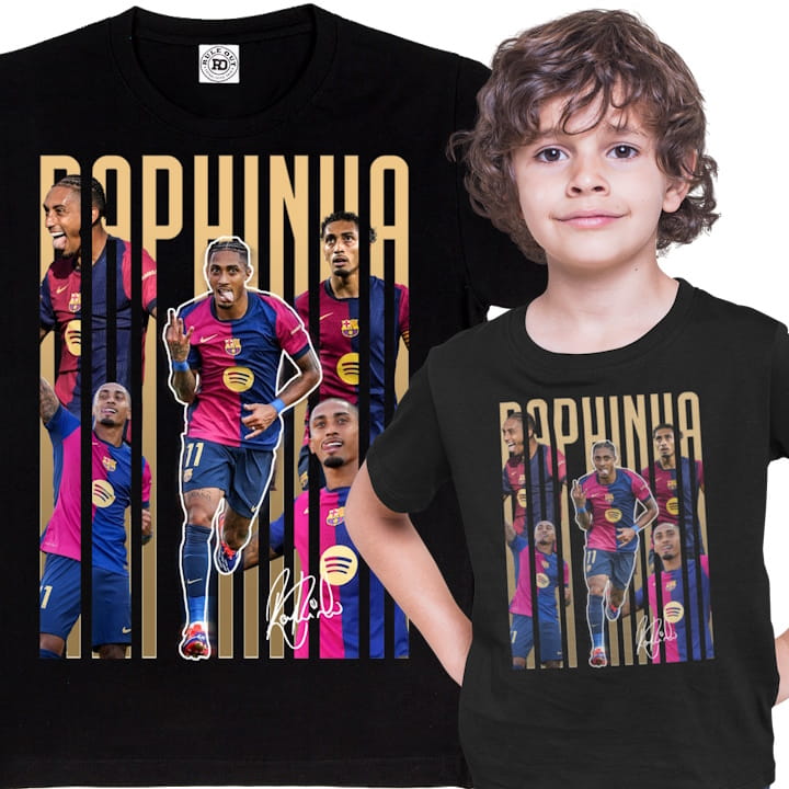 Wyjątkowa koszulka dziecięca z wizerunkiem Raphinhi to doskonały wybór dla każdego fana futbolu na najwyższym poziomie! Wykonana z wysokiej jakości materiałów, gwarantuje wygodę i trwałość, a dynamiczny nadruk oddaje styl i energię tego brazylijskiego skrzydłowego. Idealna na mecze, treningi i do codziennych stylizacji, pozwoli każdemu kibicowi Dumy Katalonii wyrazić swoją pasję.