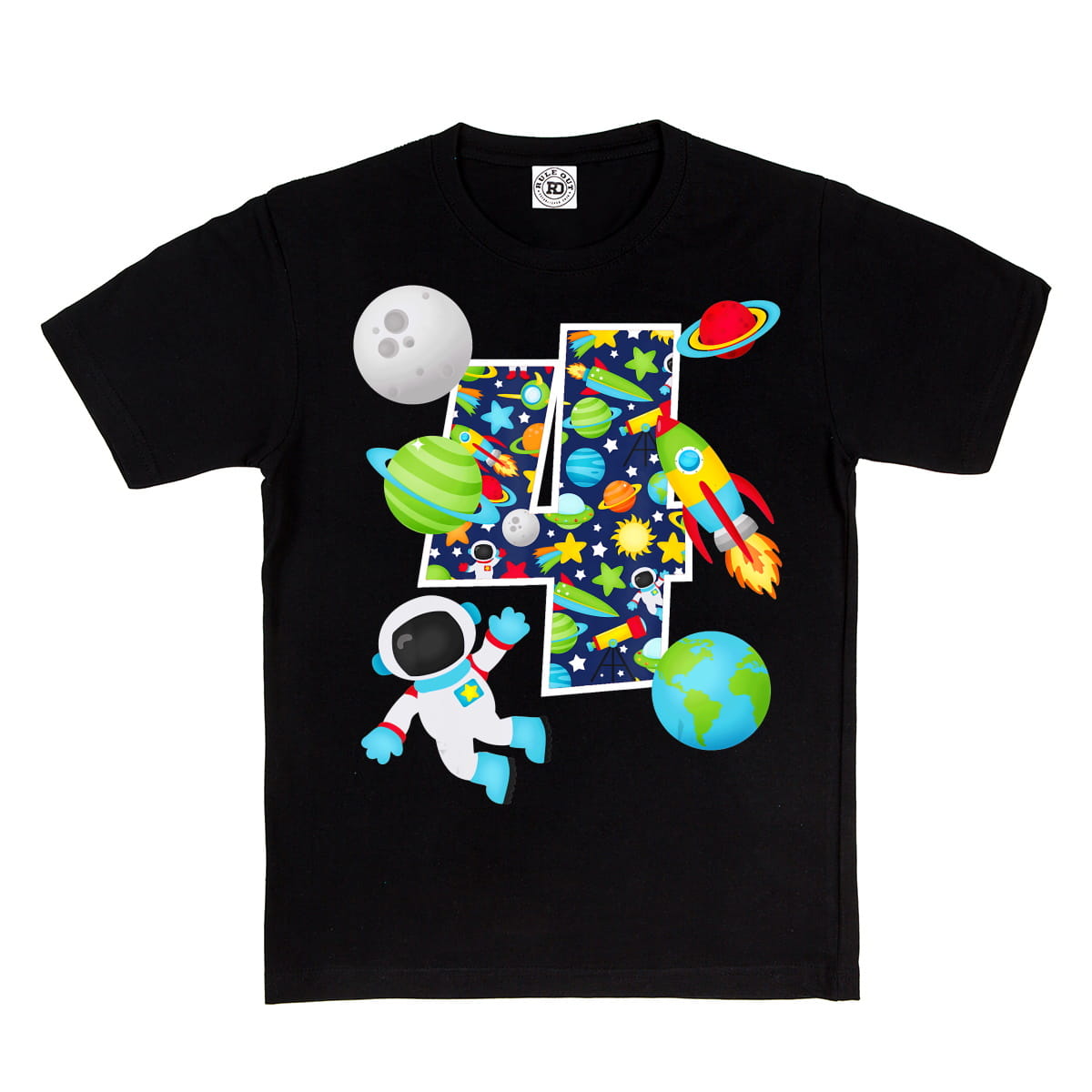 - T-shirt dziecięcy na urodziny z motywem kosmosu.