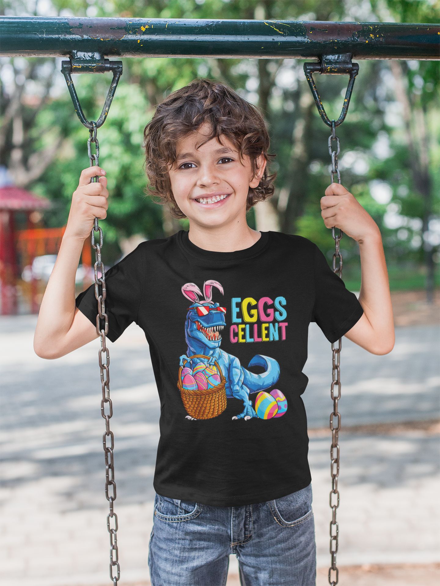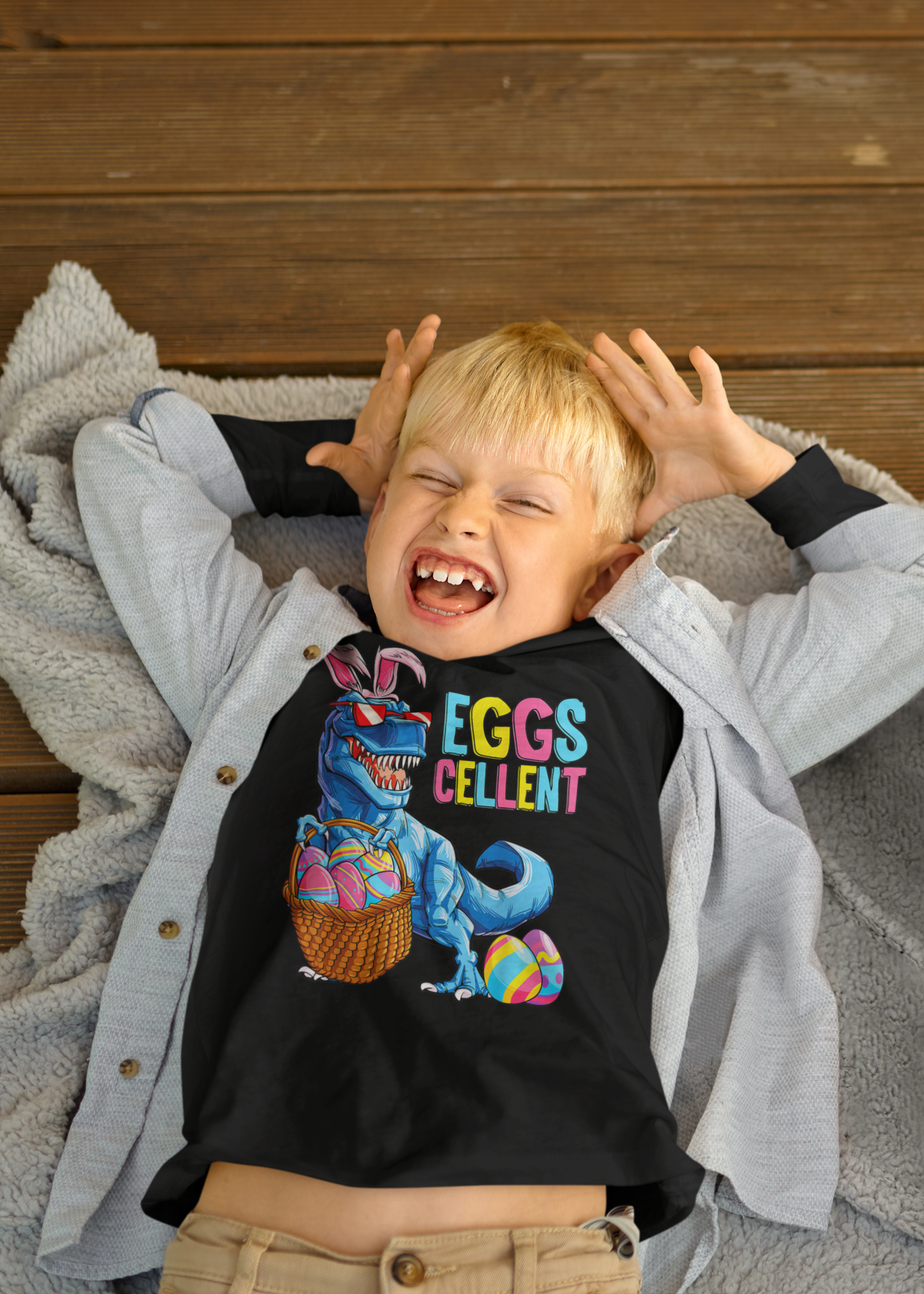 DZIECIĘCA KOSZULKA ŚWIĄTECZNA WIELKANOC DINOZAUR PISANKI EGGSCELLENT