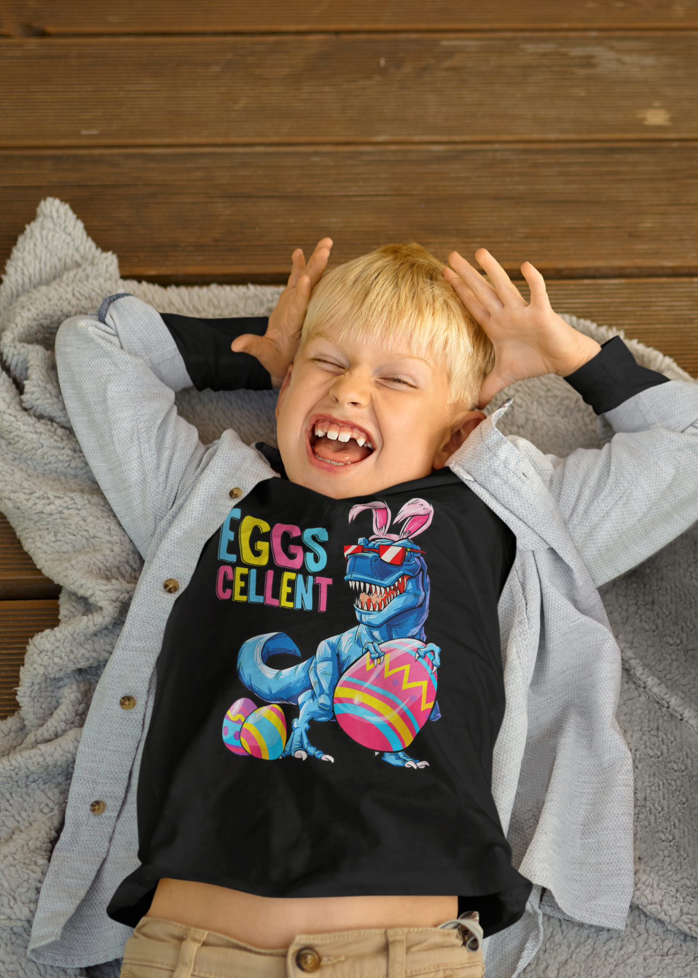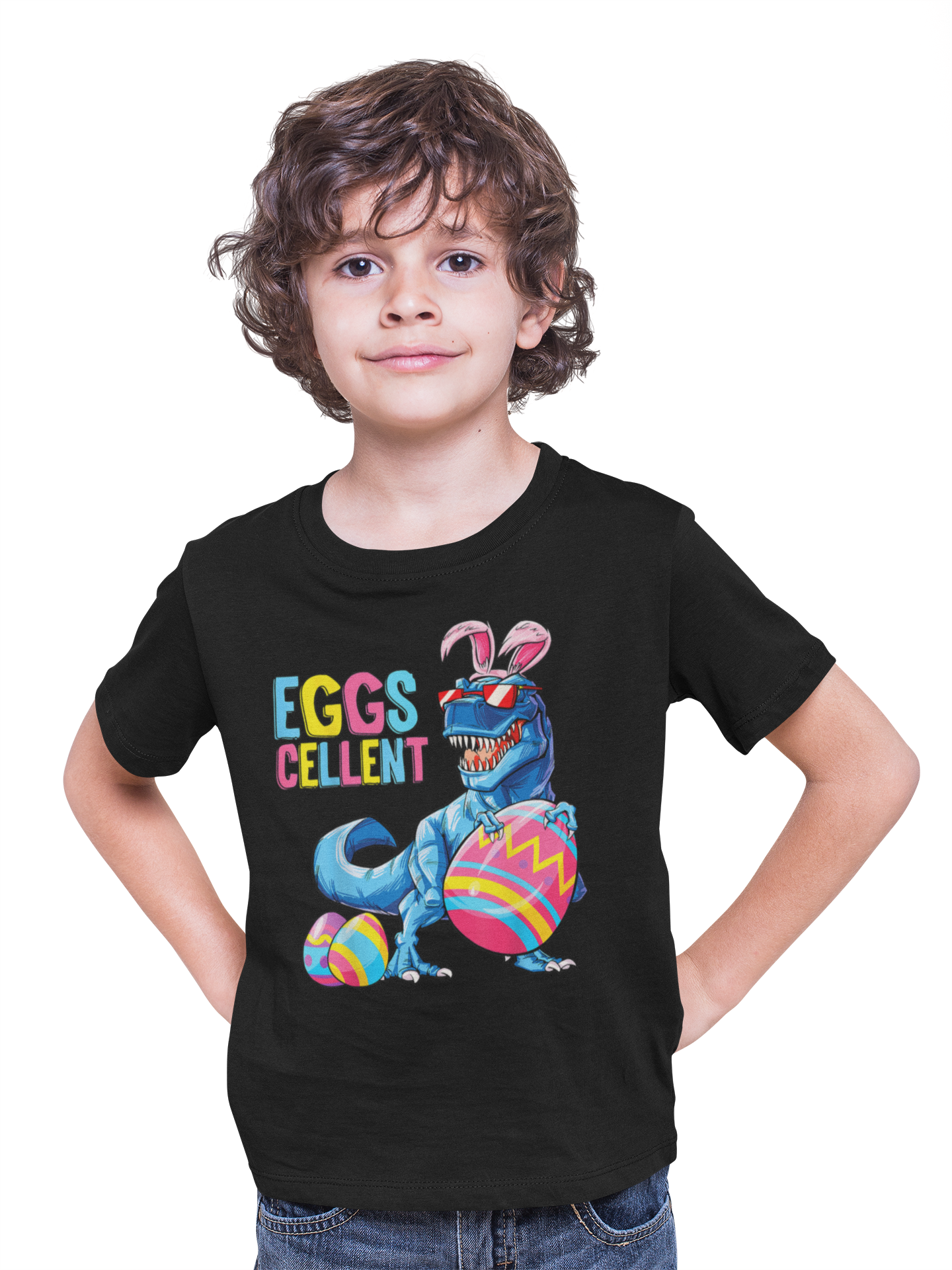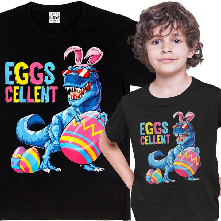 DZIECIĘCA KOSZULKA ŚWIĄTECZNA WIELKANOC DINOZAUR Z PISANKAMI