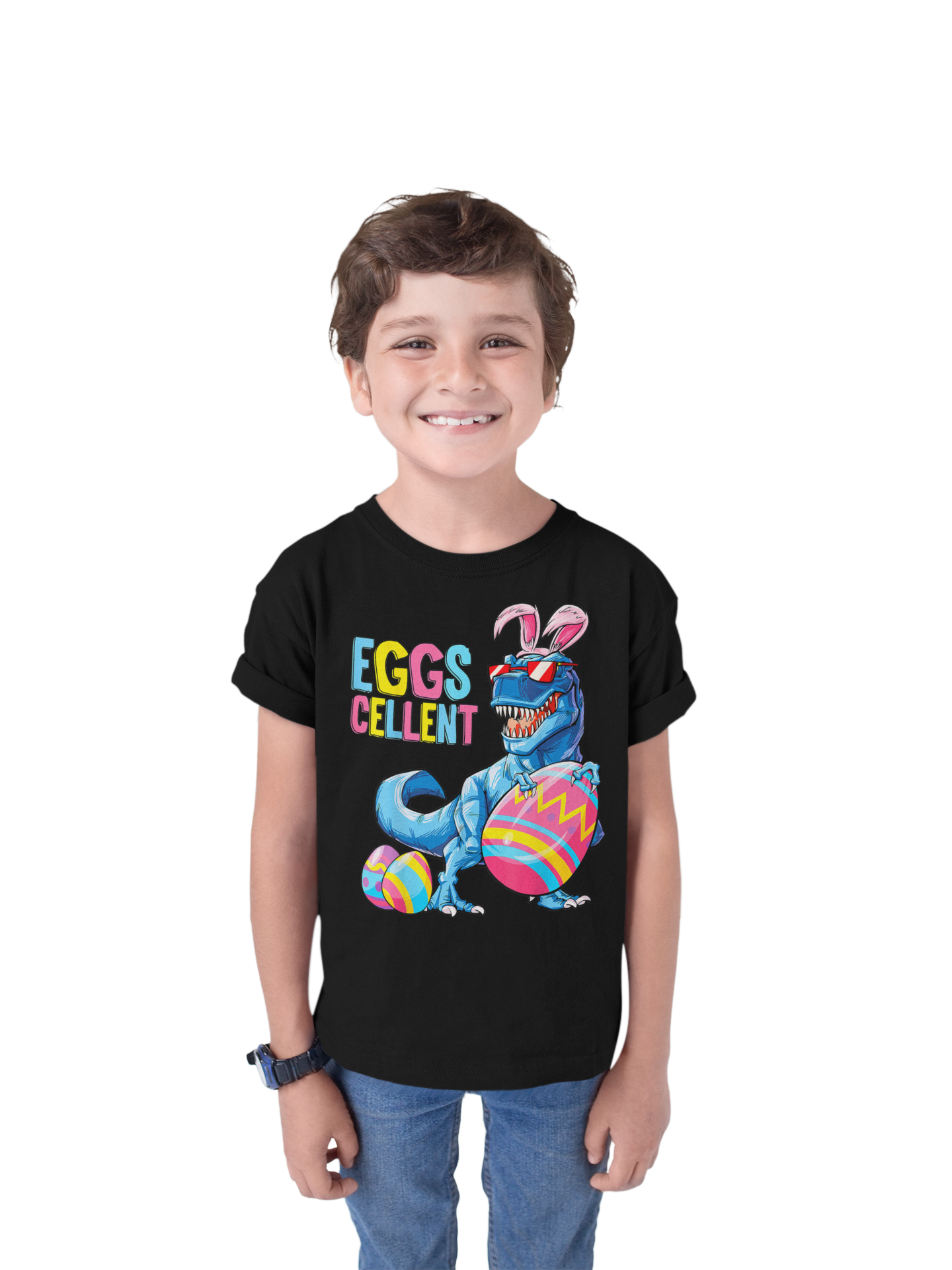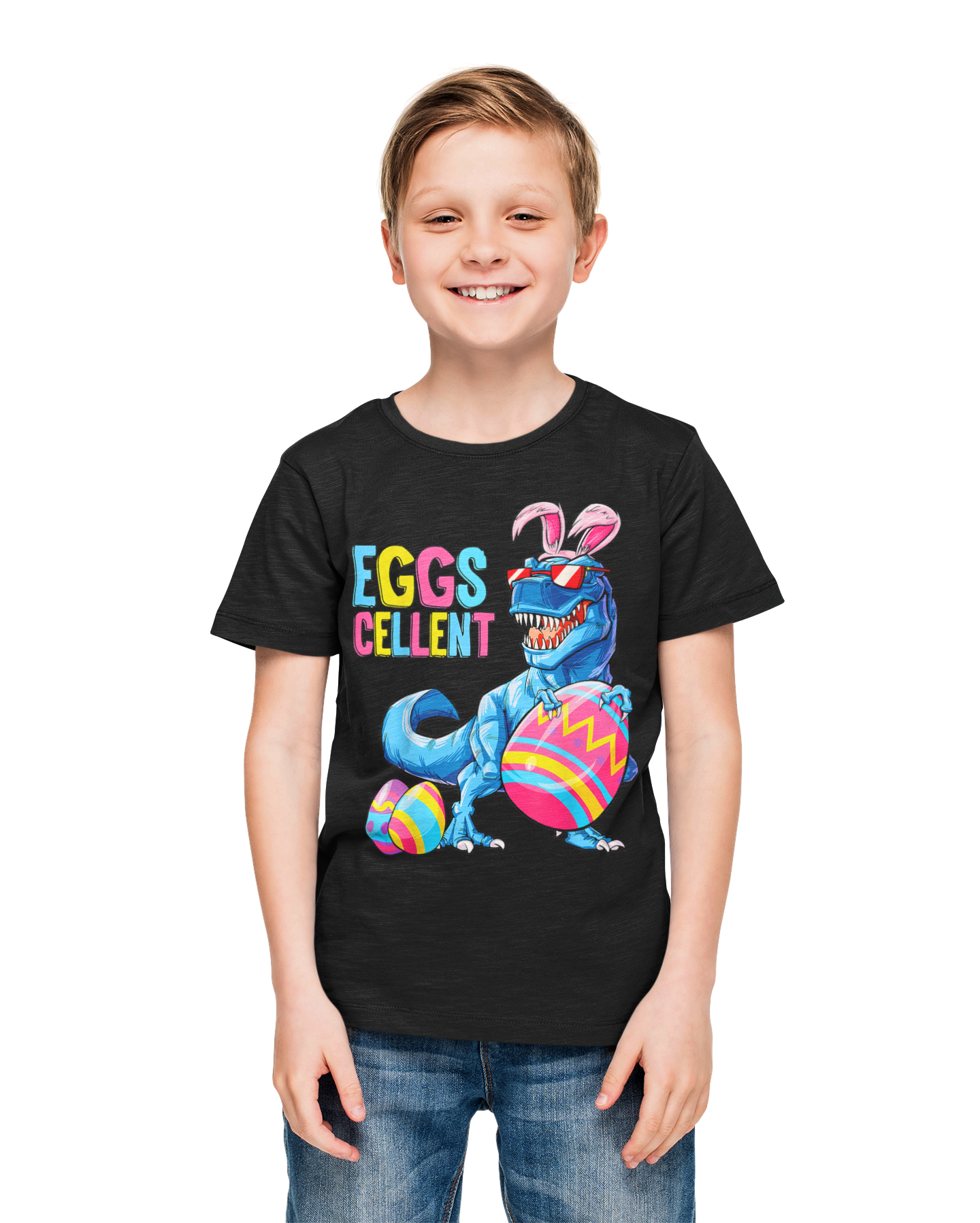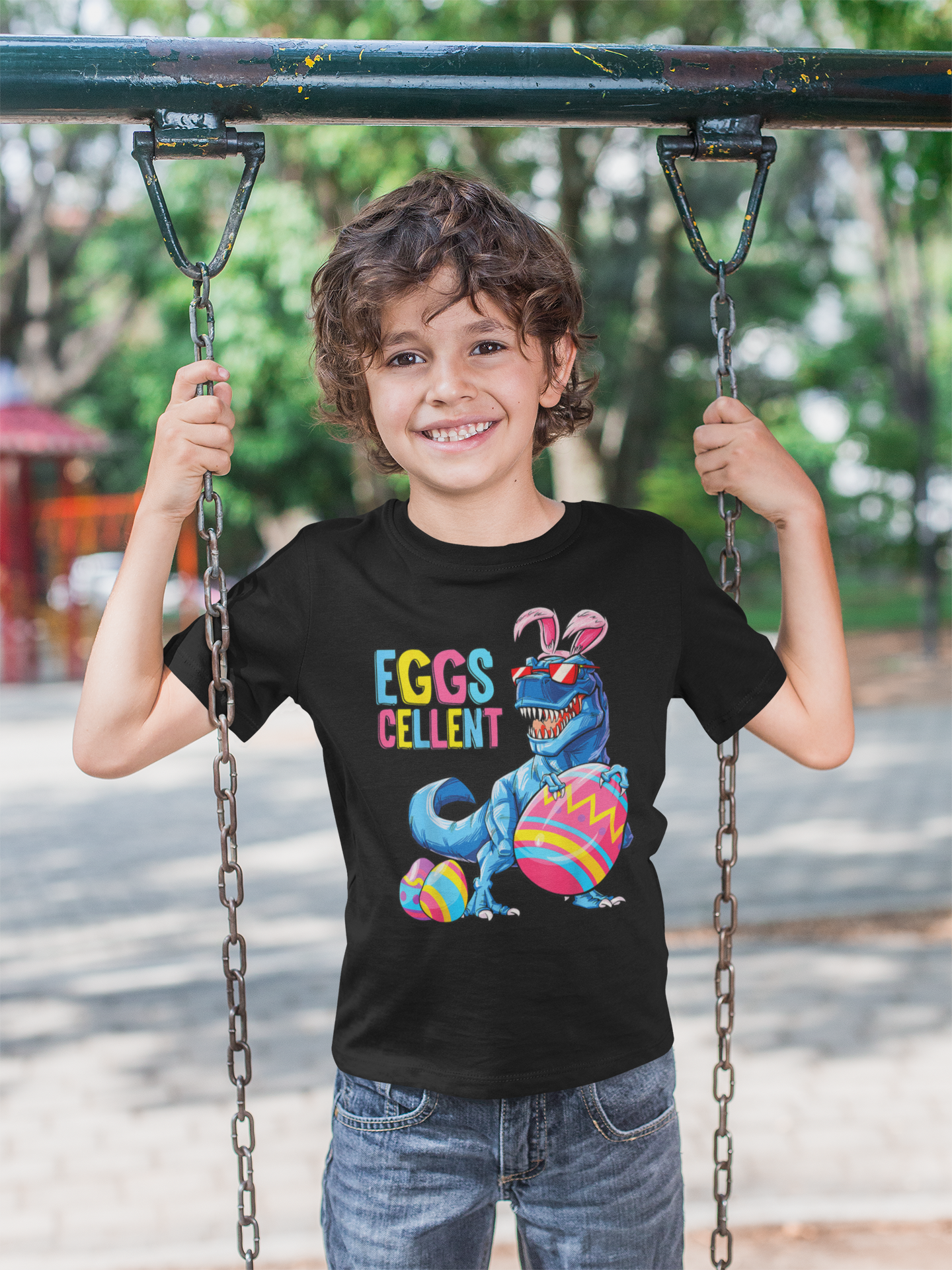 DZIECIĘCA KOSZULKA ŚWIĄTECZNA WIELKANOC DINOZAUR Z PISANKAMI
