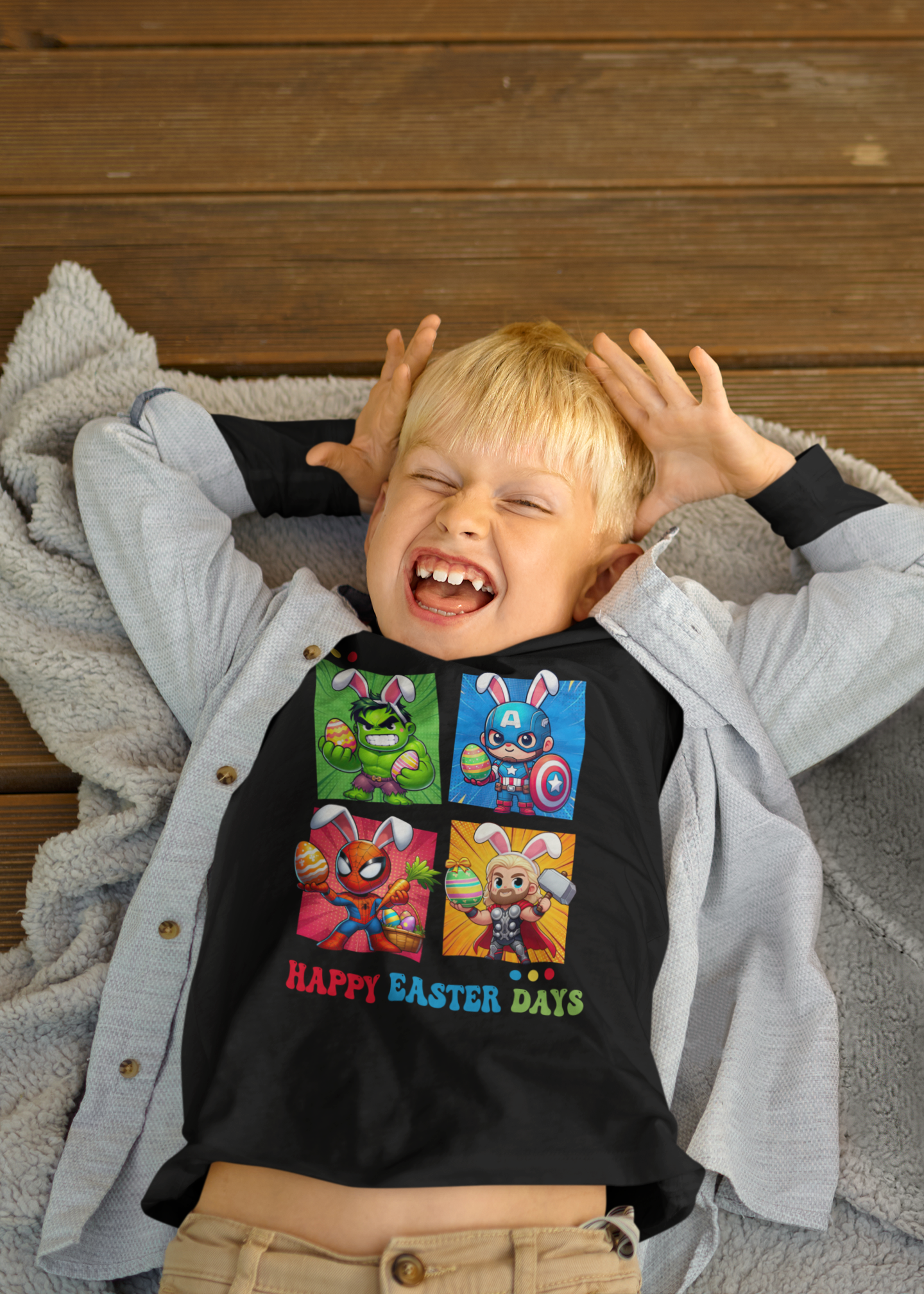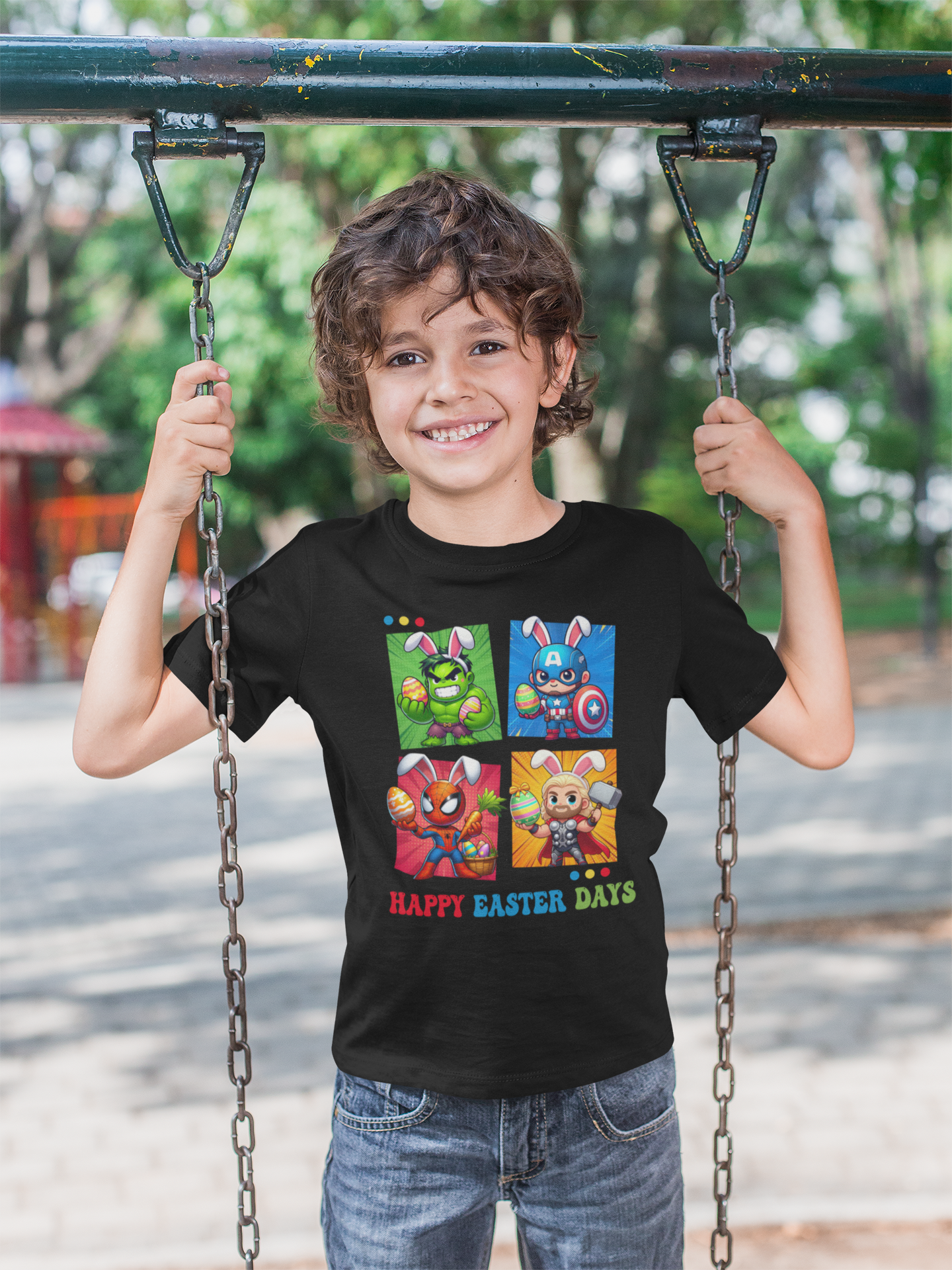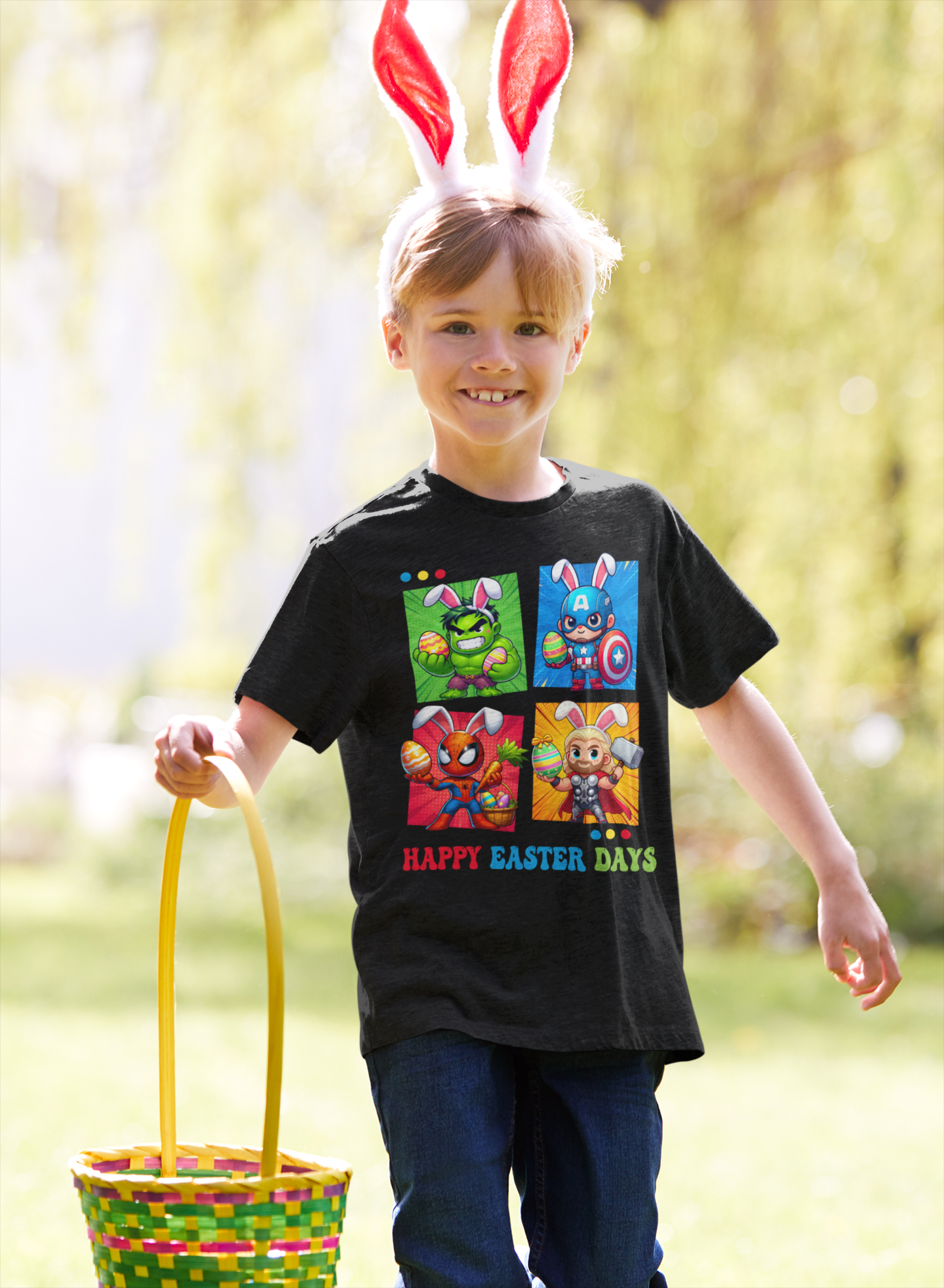 DZIECIĘCA KOSZULKA ŚWIĄTECZNA WIELKANOC HAPPY EASTER DAYS BOHATEROWIE MARVELA