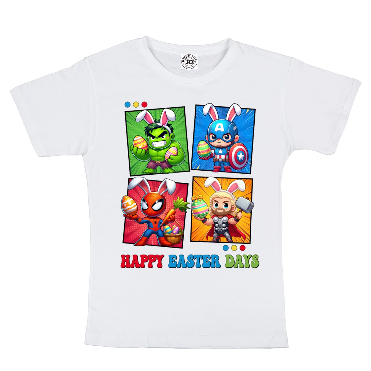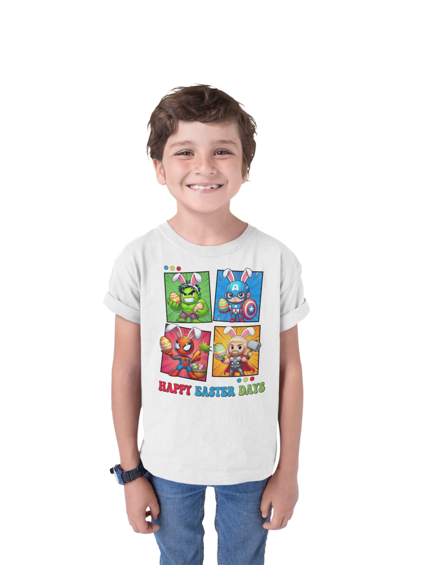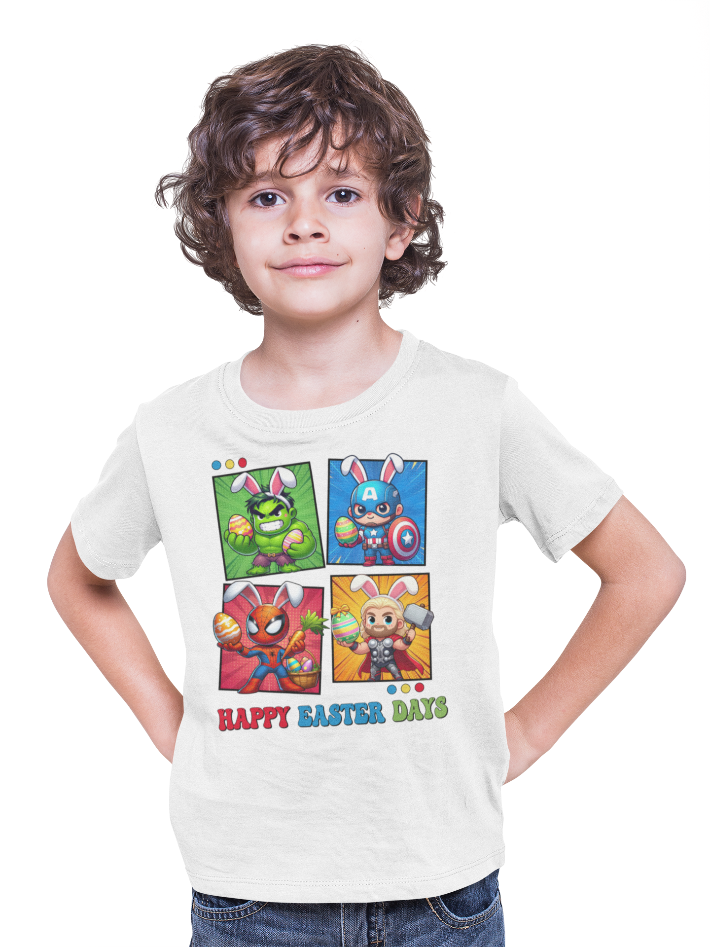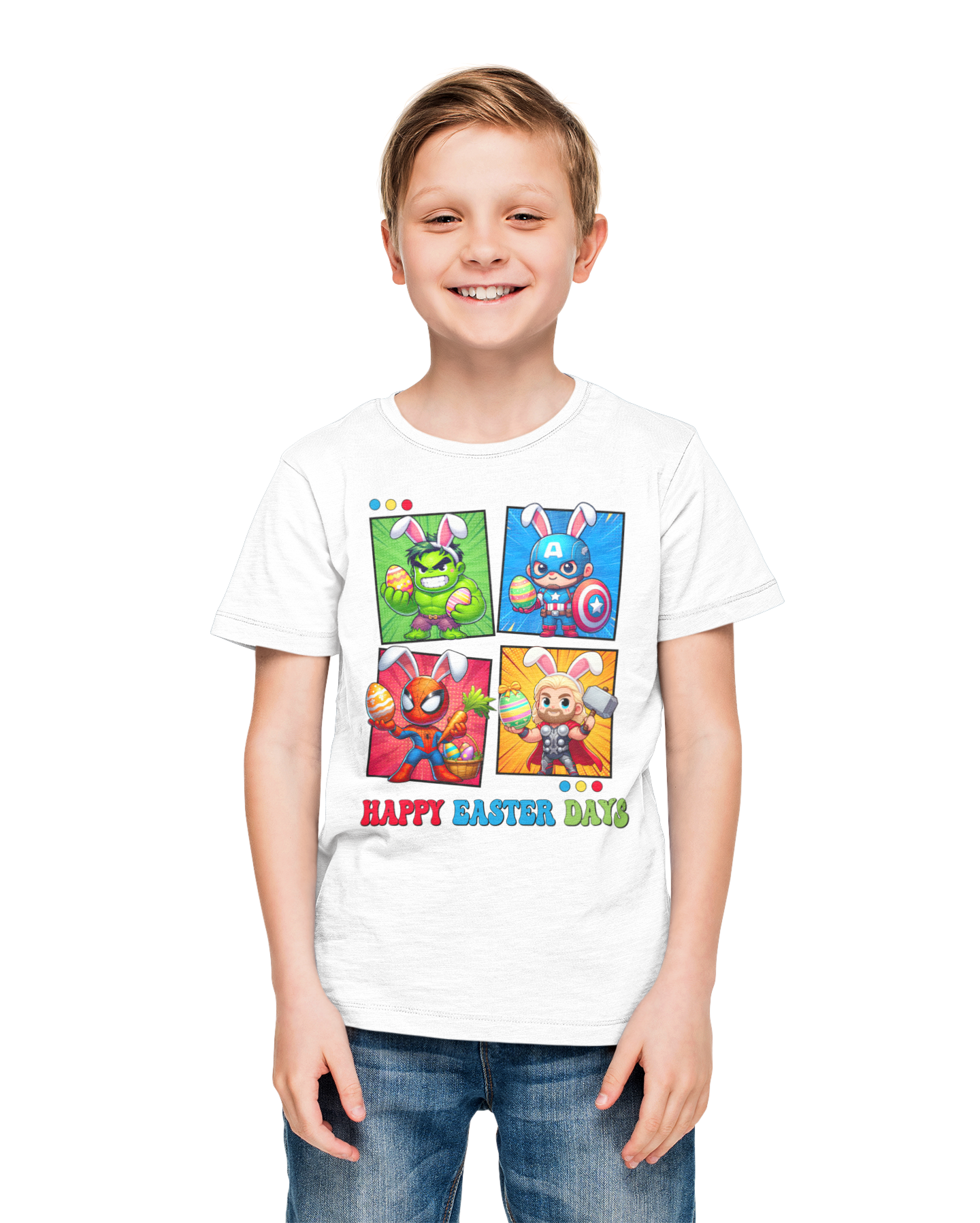 DZIECIĘCA KOSZULKA ŚWIĄTECZNA WIELKANOC HAPPY EASTER DAYS BOHATEROWIE MARVELA