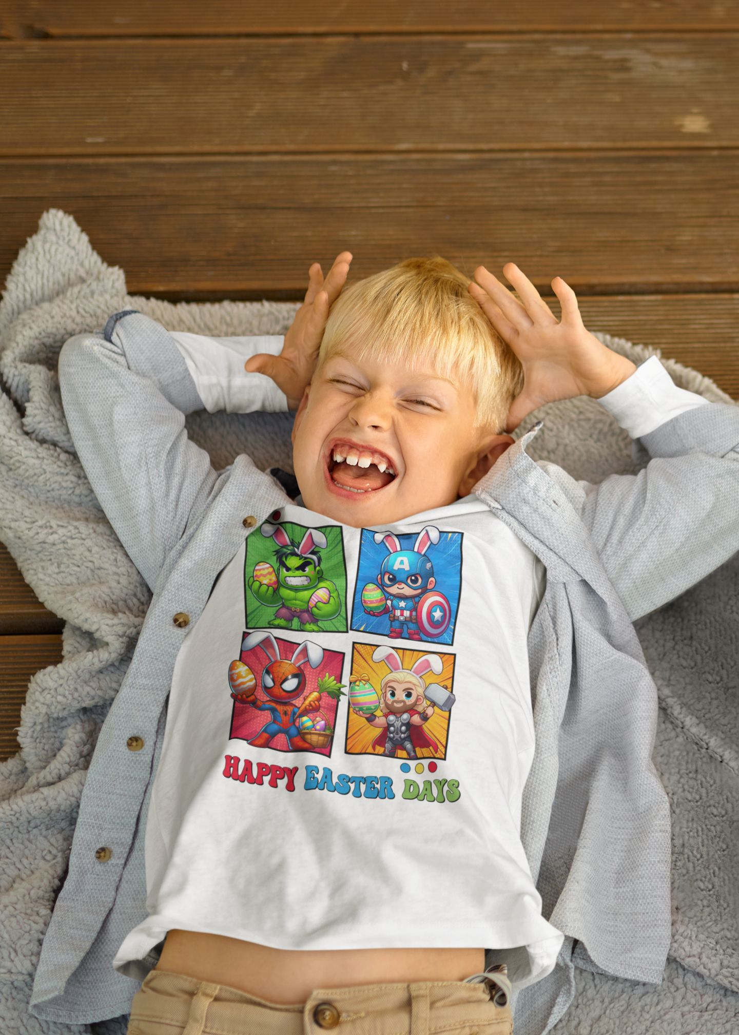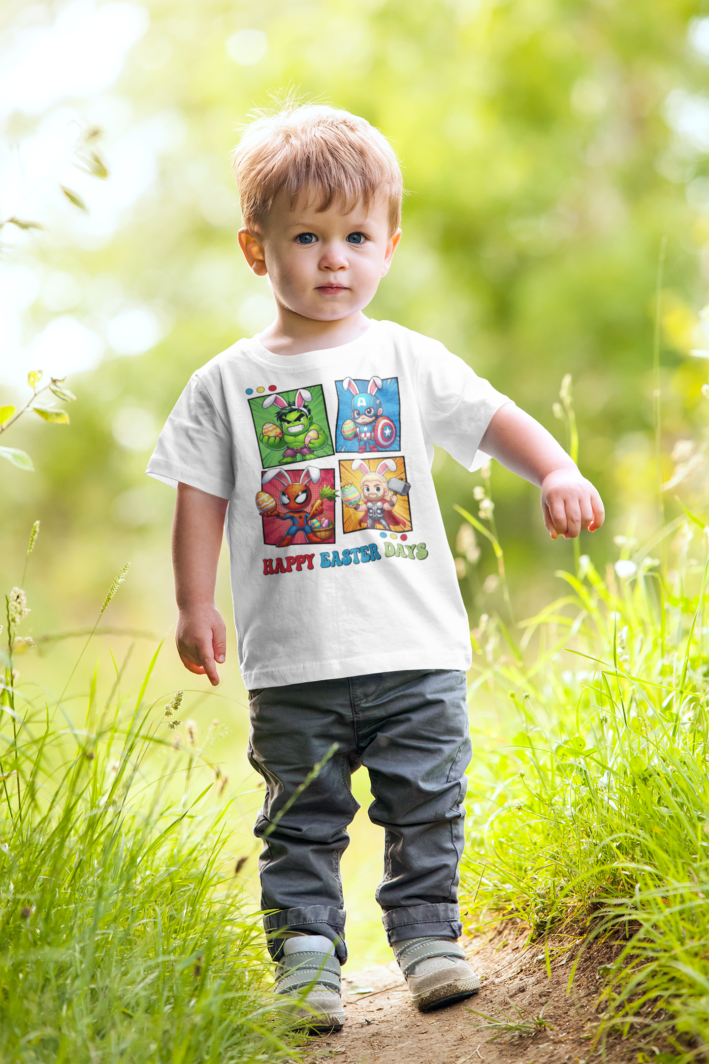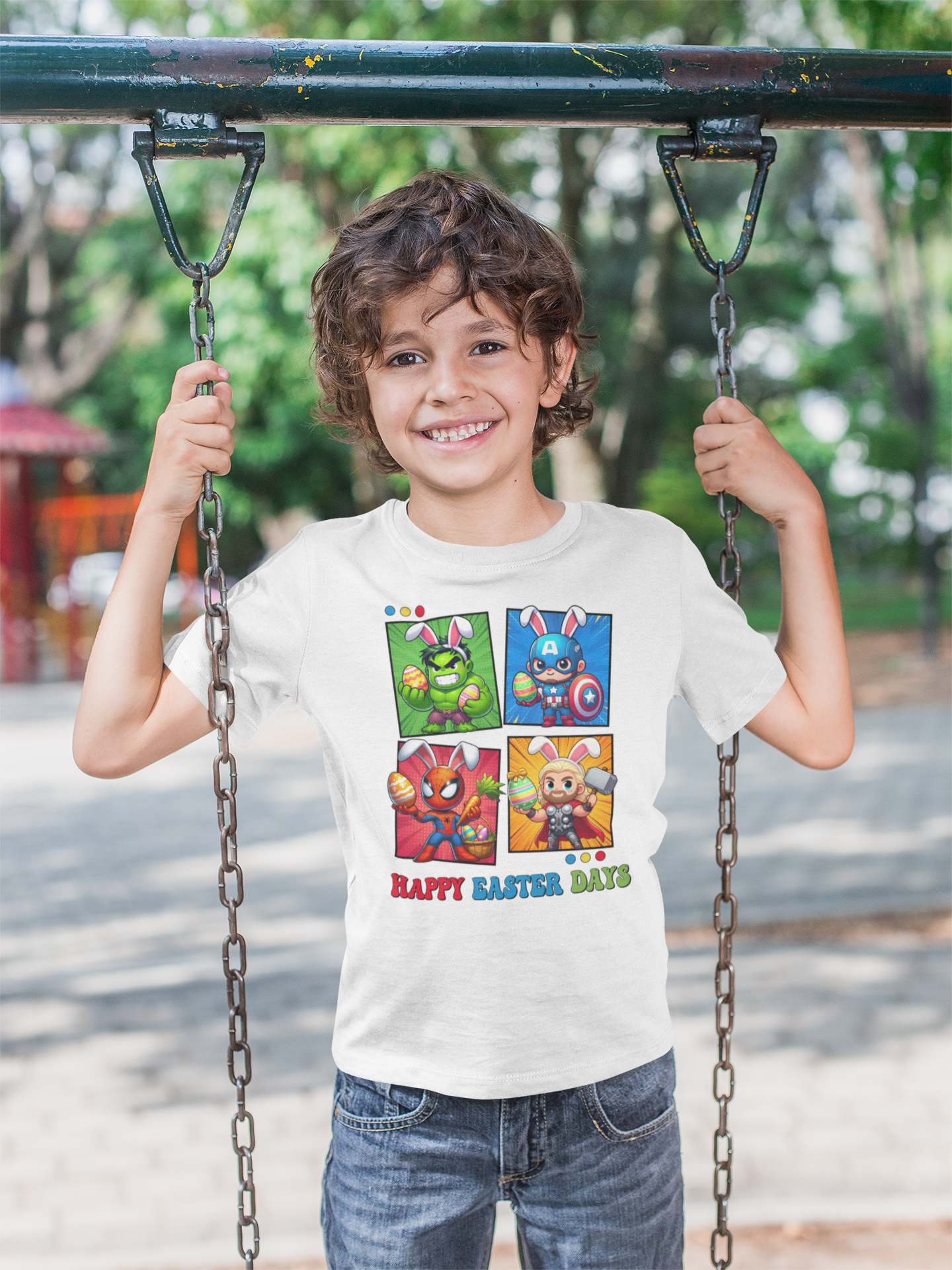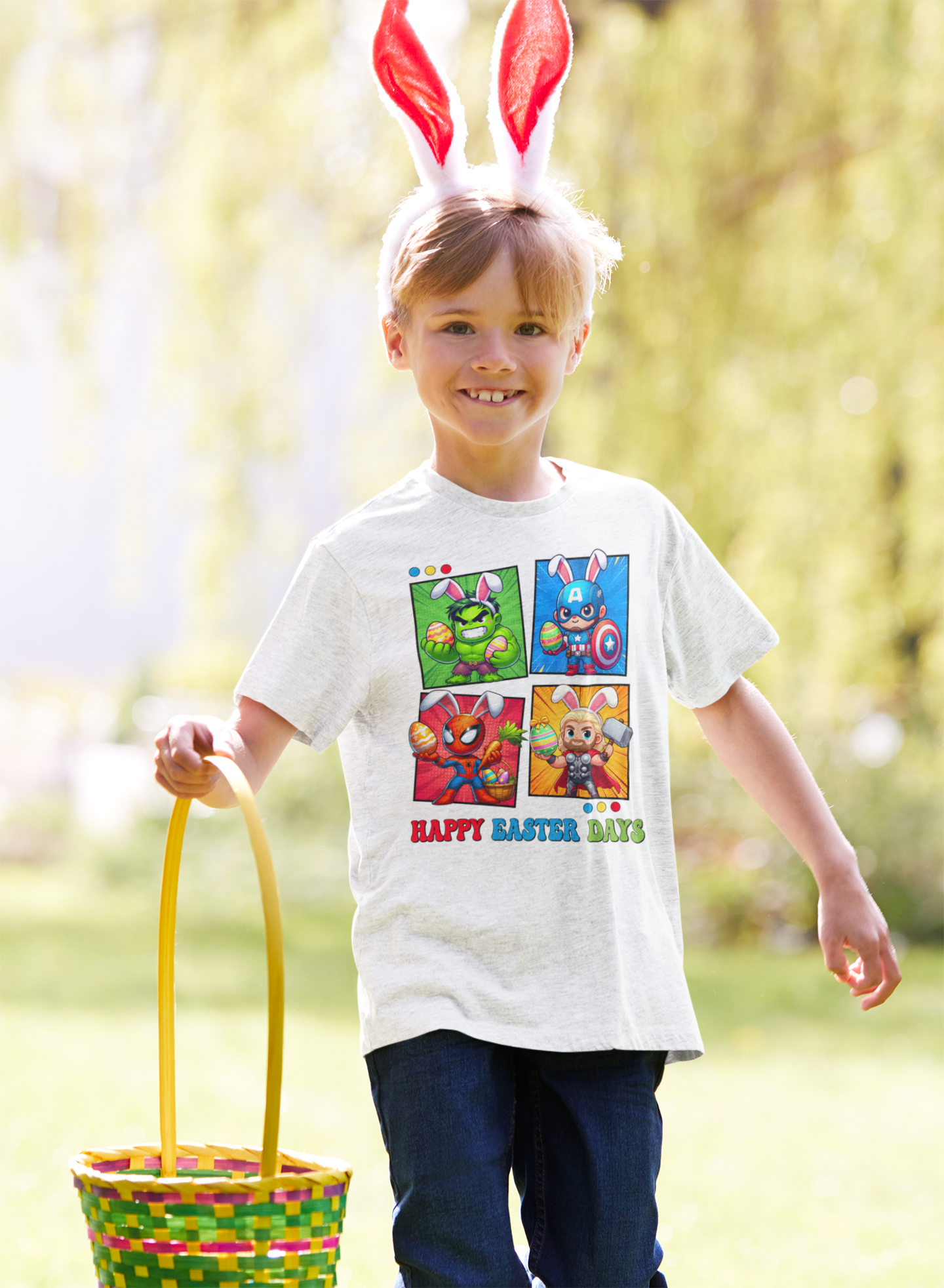 DZIECIĘCA KOSZULKA ŚWIĄTECZNA WIELKANOC HAPPY EASTER DAYS BOHATEROWIE MARVELA