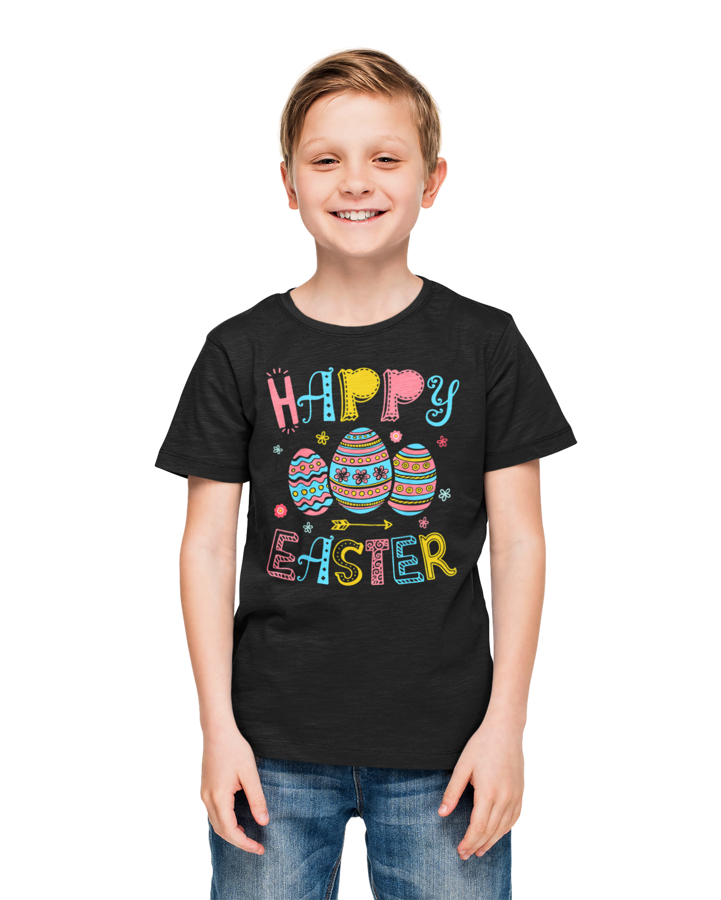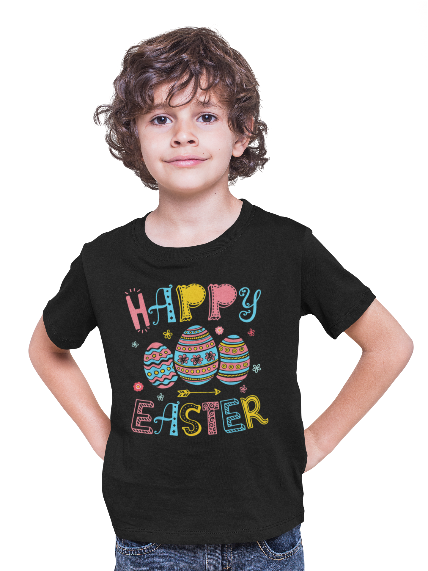 DZIECIĘCA KOSZULKA ŚWIĄTECZNA WIELKANOC HAPPY EASTER KOLORWE PISANKI