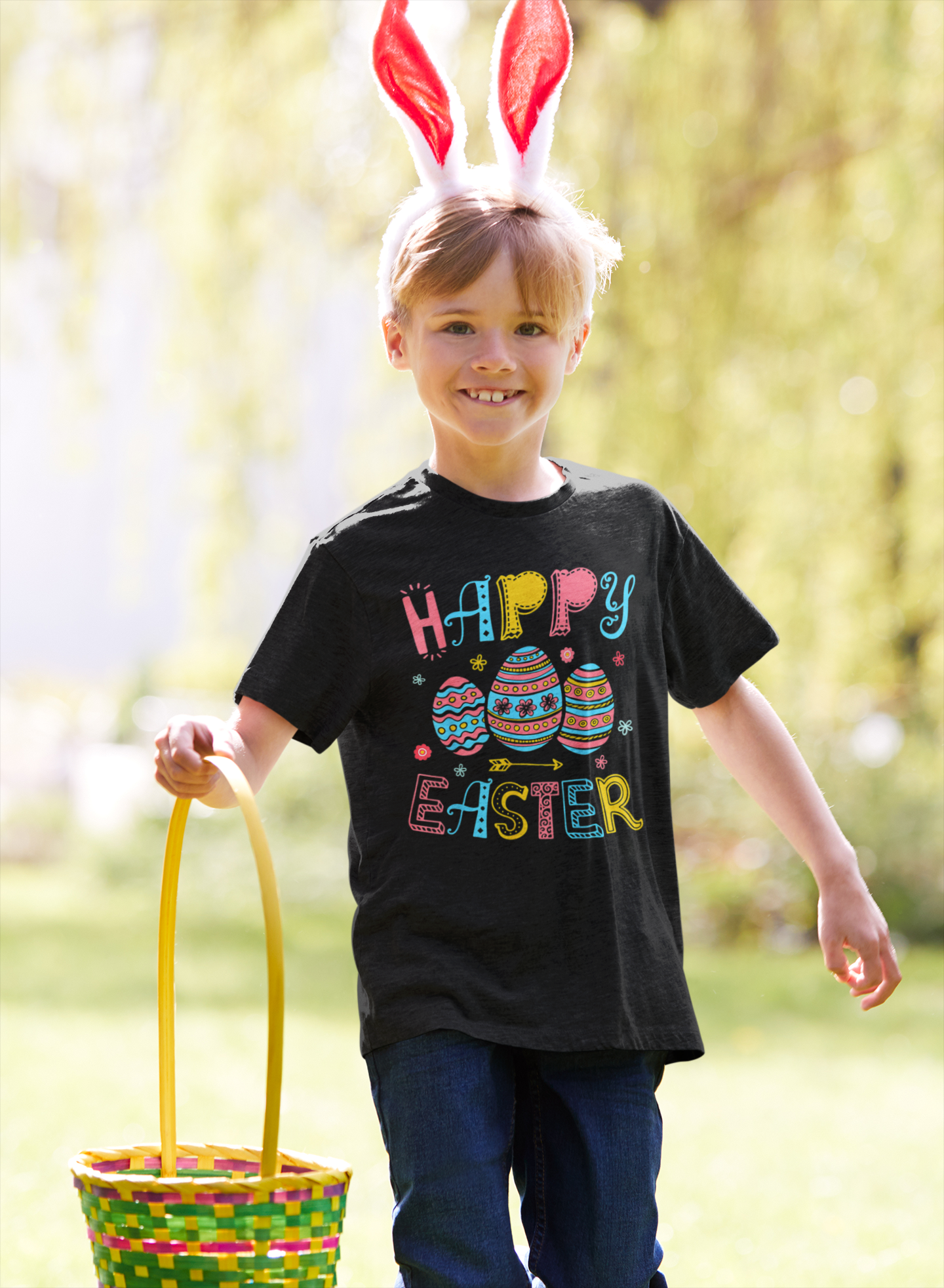 Radosna koszulka dziecięca z uroczym nadrukiem wielkanocnym, idealna na wiosenne świętowanie! Doskonały pomysł na prezent do koszyczka dla maluchów, jak i tych starszych dzieci.