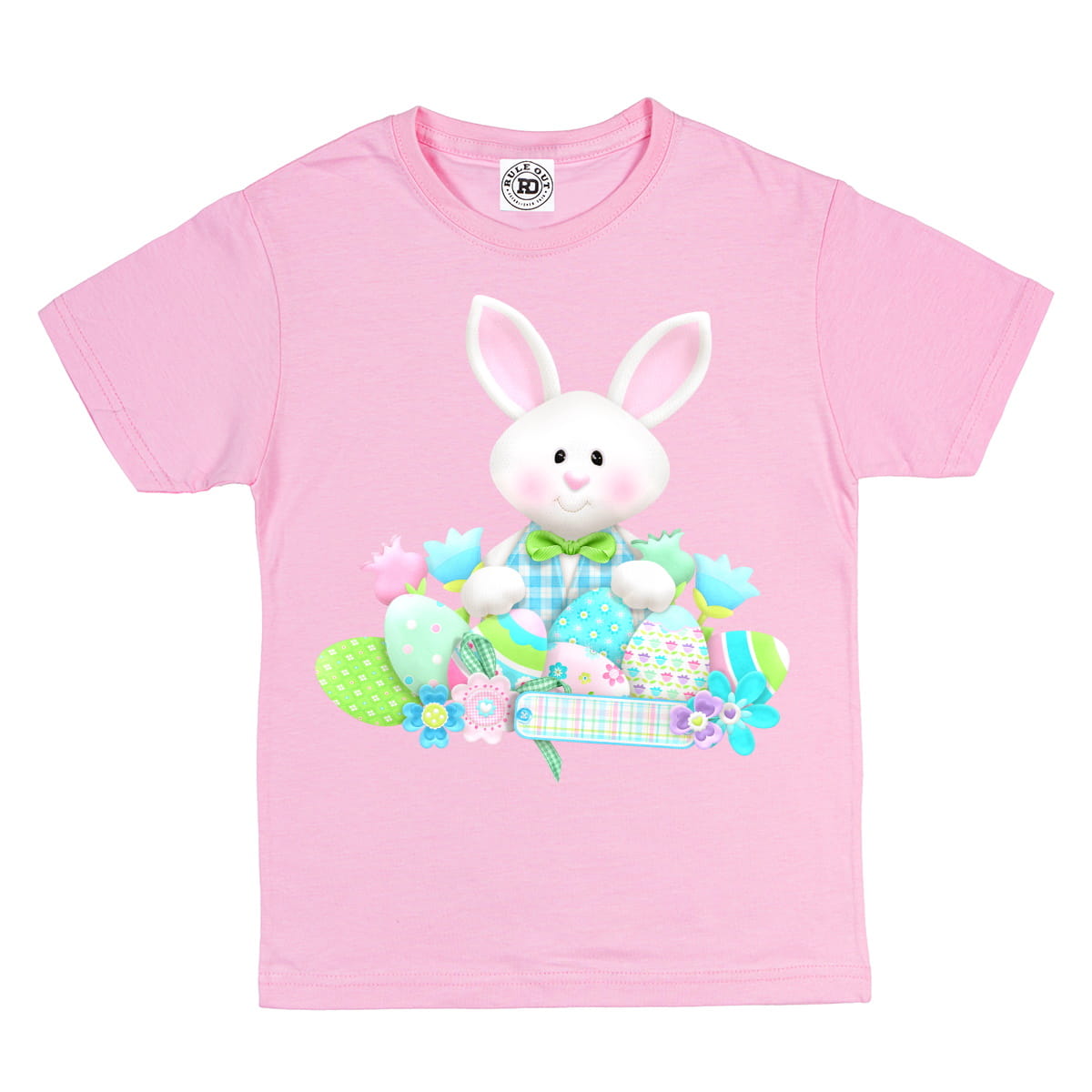 T-shirt dziecięcy z nadrukiem uroczego króliczka - idealny na prezent do koszyczka od zajączka wielkanocnego.
