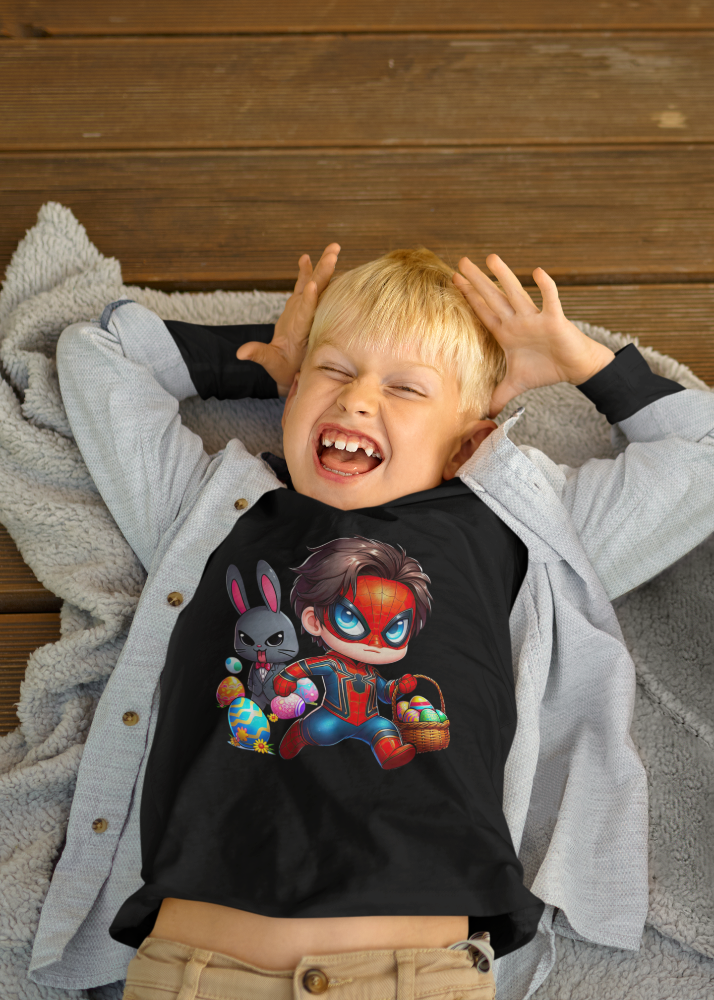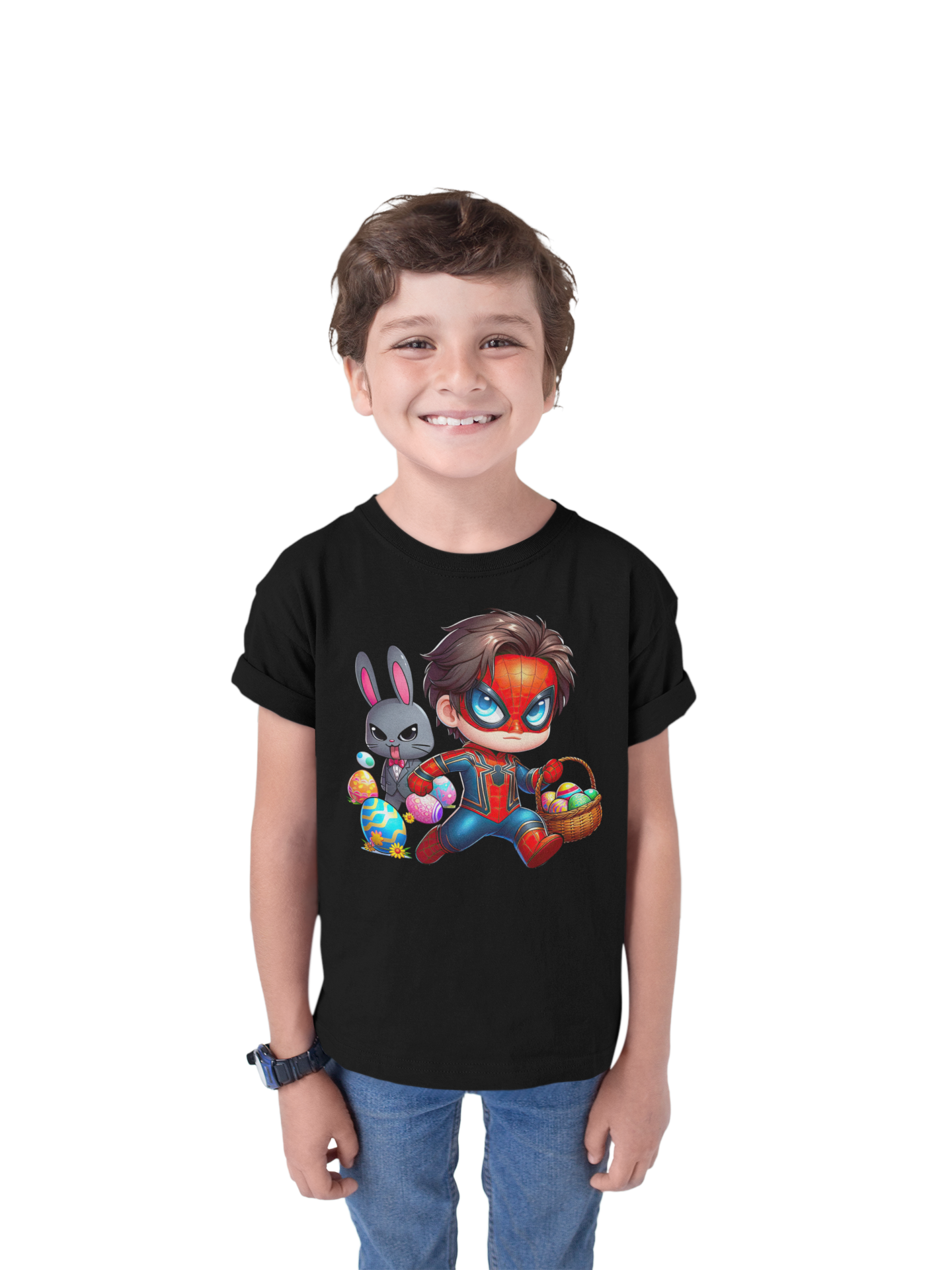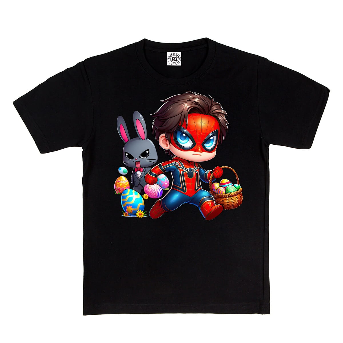 DZIECIĘCA KOSZULKA ŚWIĄTECZNA WIELKANOC SPIDER MAN Z KOSZYCZKIEM Z PISANKAMI