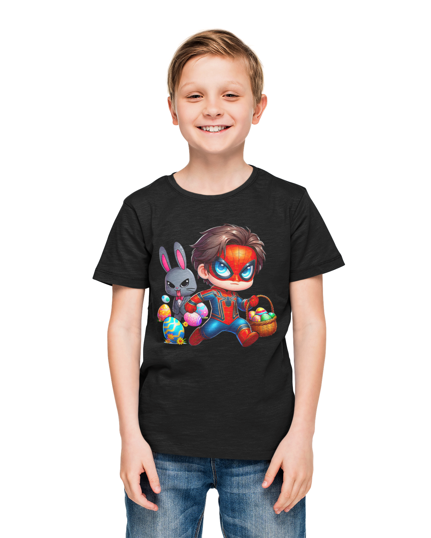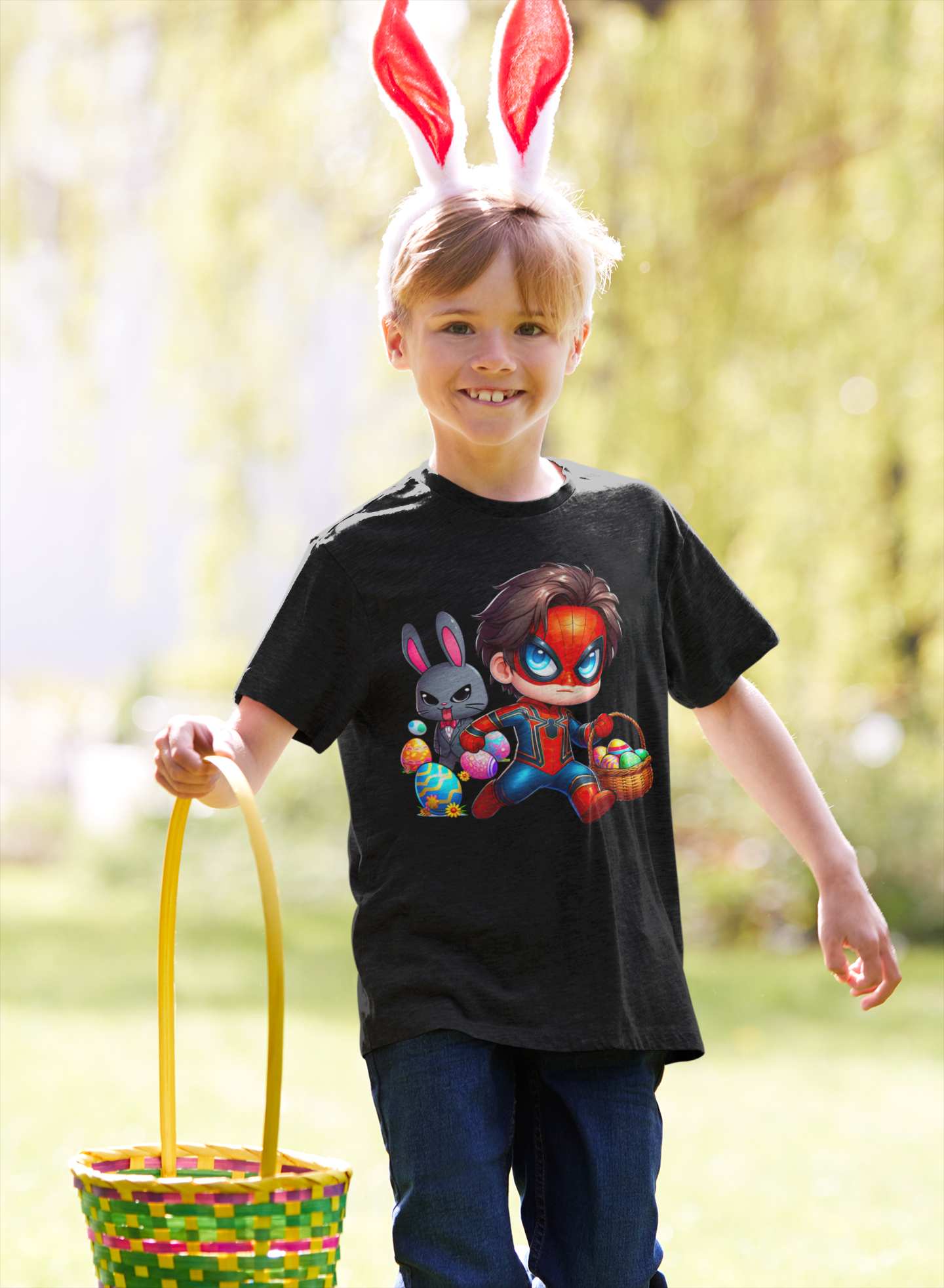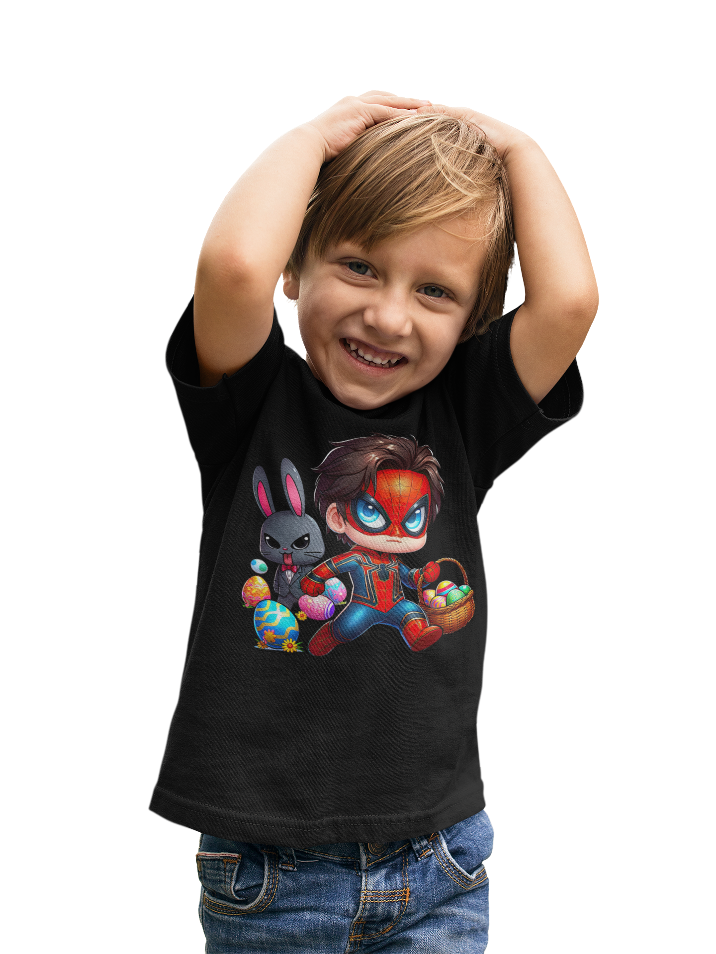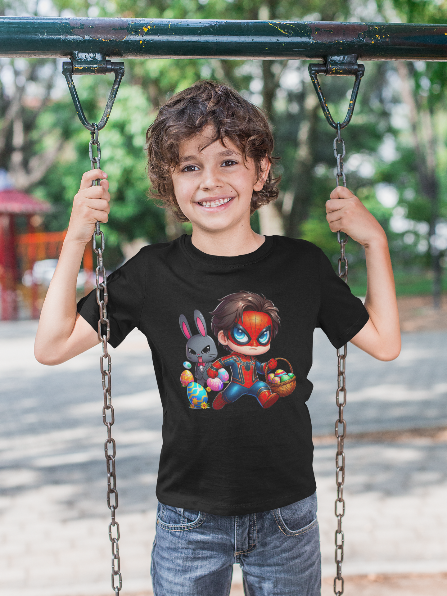 DZIECIĘCA KOSZULKA ŚWIĄTECZNA WIELKANOC SPIDER MAN Z KOSZYCZKIEM Z PISANKAMI