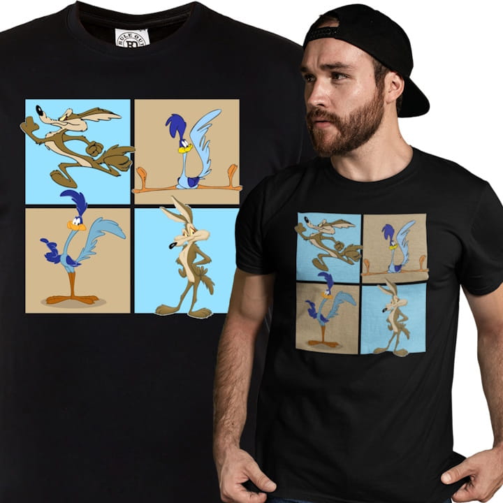 KOSZULKA BAJKOWA KRESKÓWKA LOONEY TUNES STRUŚ PĘDZIWIATR I KOJOT WILUŚ