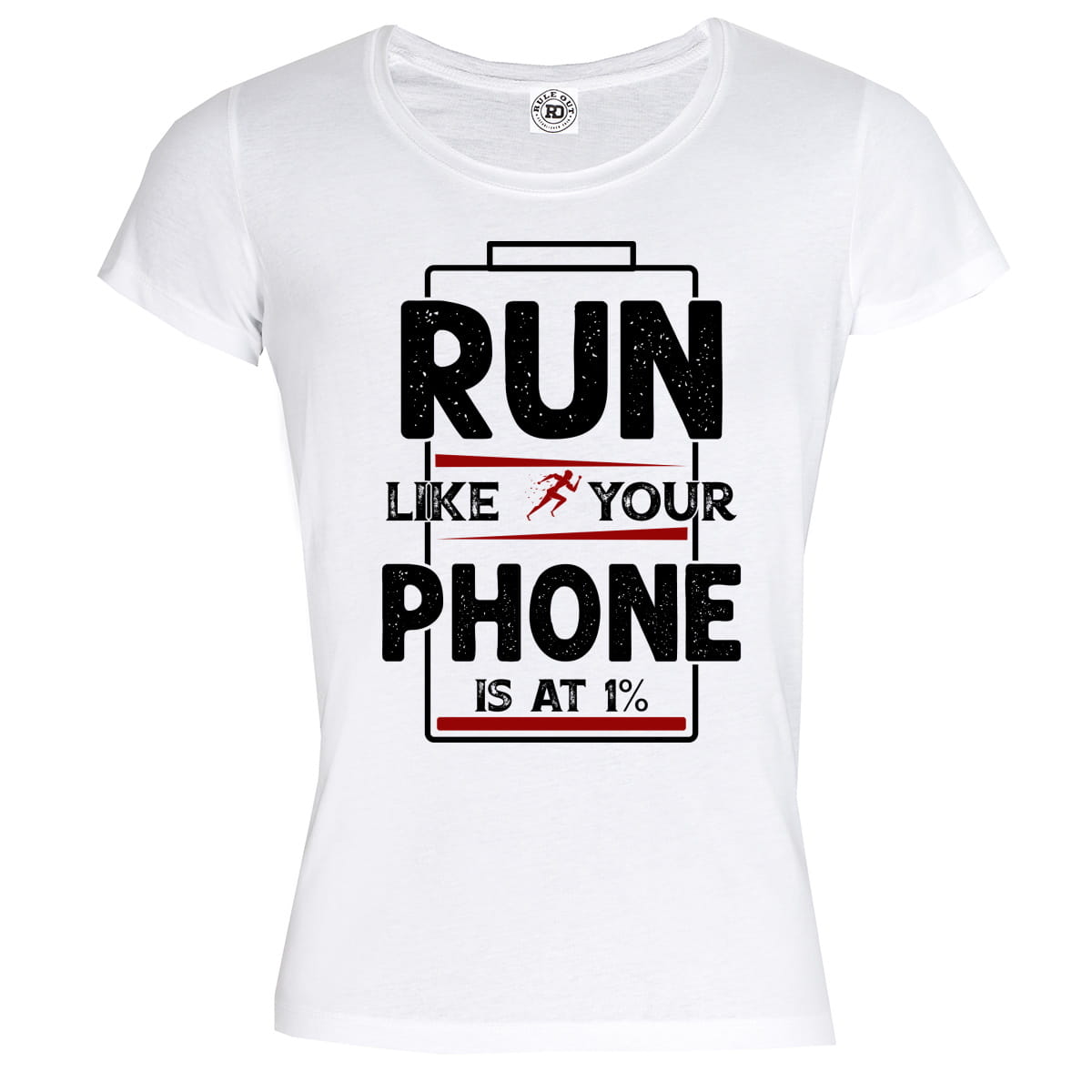 KOSZULKA DAMSKA BIEGANIE SPORT RUN LIKE YOUR PHONE IS AT 1%