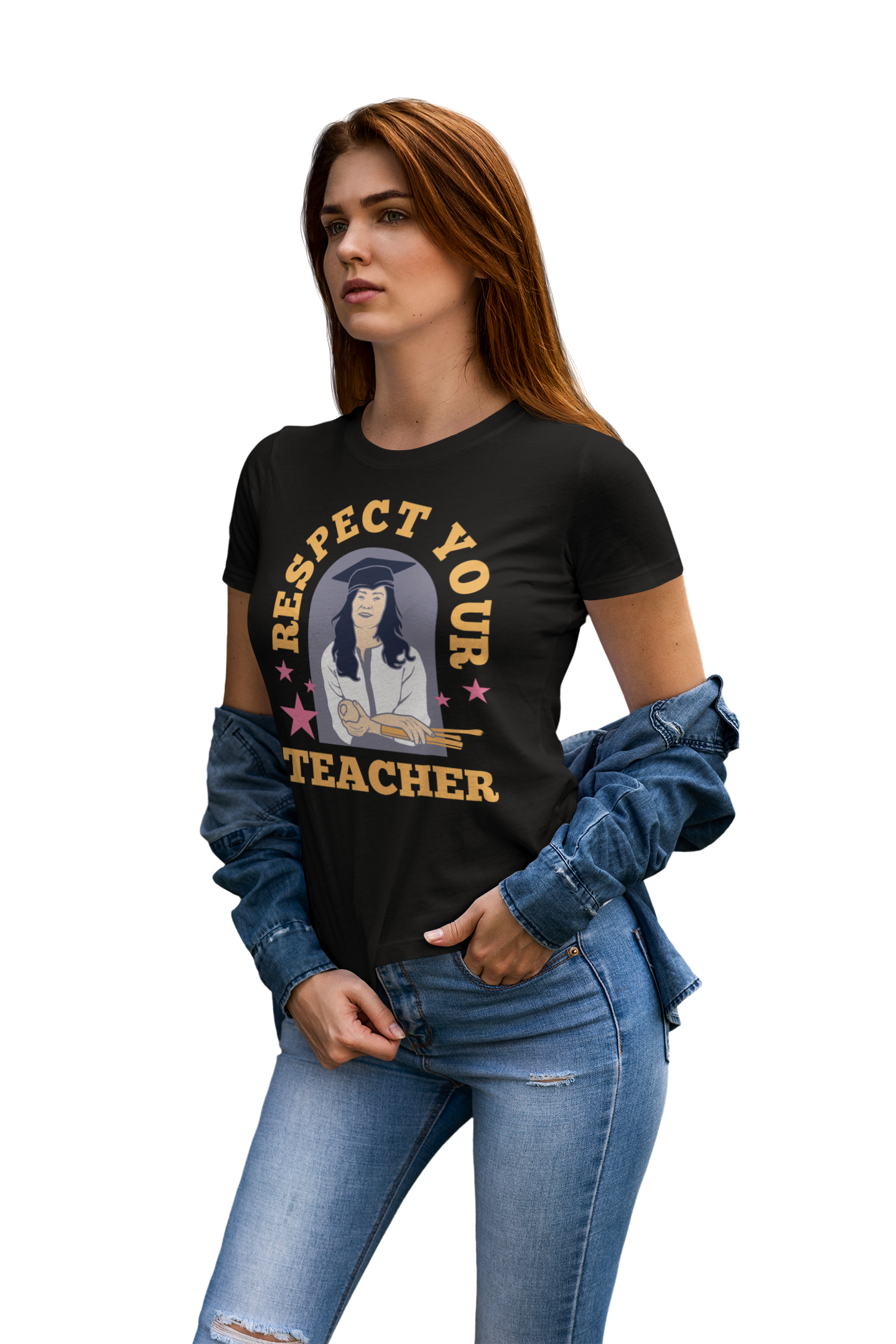 KOSZULKA DAMSKA DLA NAUCZYCIELKI DZIEŃ NAUCZYCIELA PREZENT RESPECT YOUR TEACHER