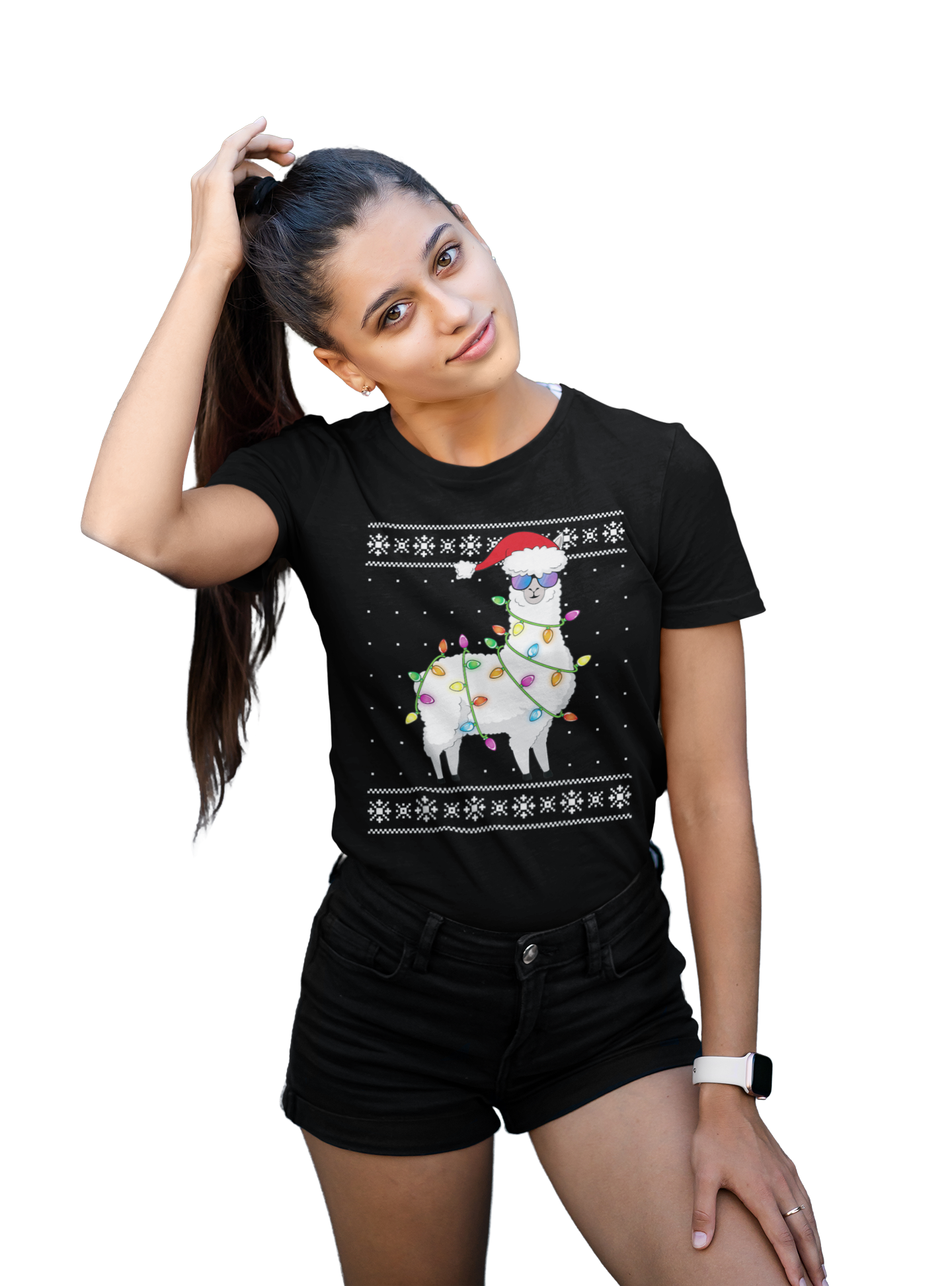 KOSZULKA DAMSKA NA ŚWIĘTA BOŻE NARODZENIE ŚWIĄTECZNA LAMA KOLOROWE LAMPKI