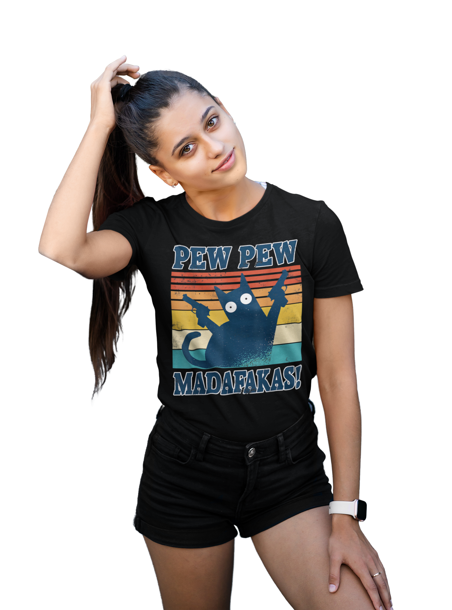 KOSZULKA DAMSKA PEW PEW MADAFAKAS GRANATOWY KOT