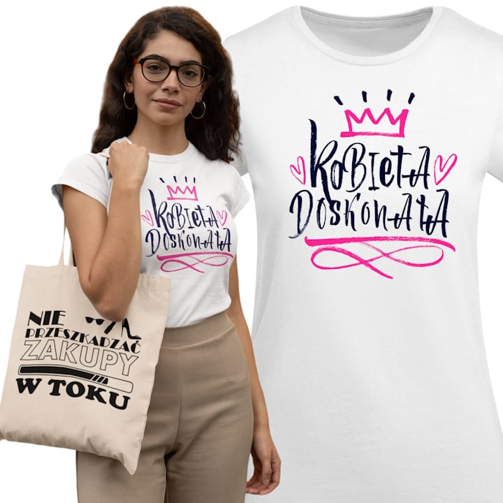 KOSZULKA DAMSKA PREZENT NA DZIEŃ KOBIET KOBIETA DOSKONAŁA TORBA GRATIS
