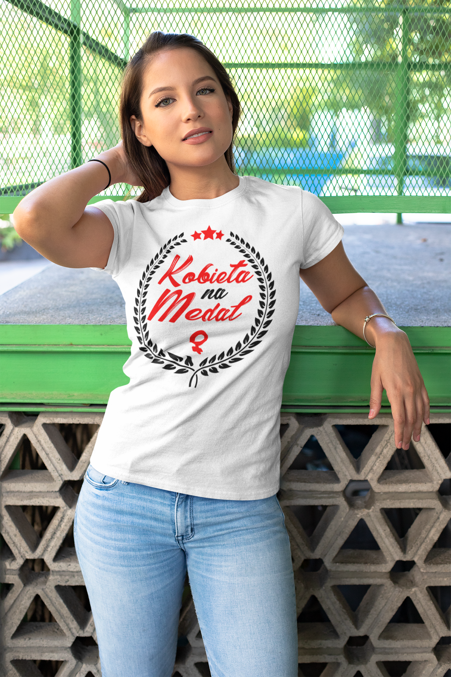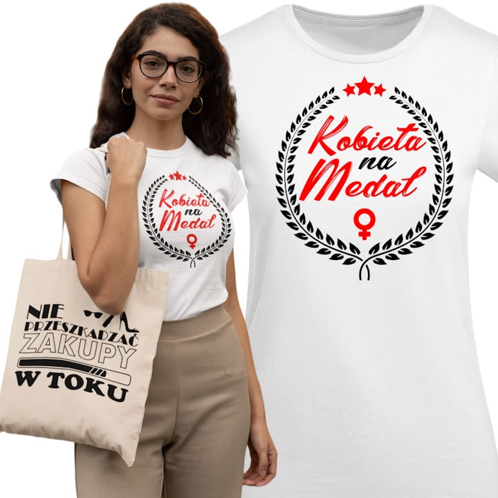KOSZULKA DAMSKA PREZENT NA DZIEŃ KOBIET KOBIETA NA MEDAL TORBA GRATIS