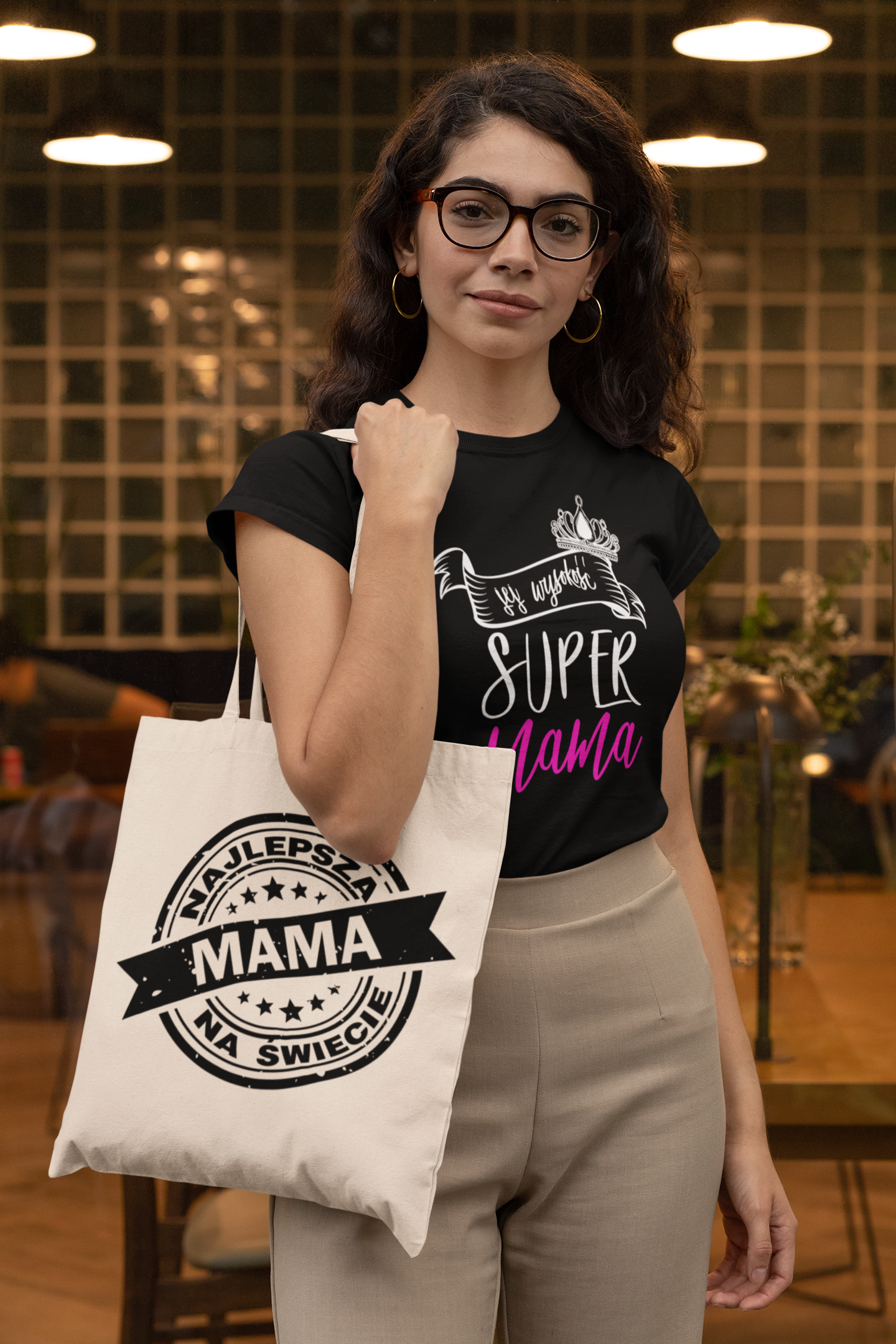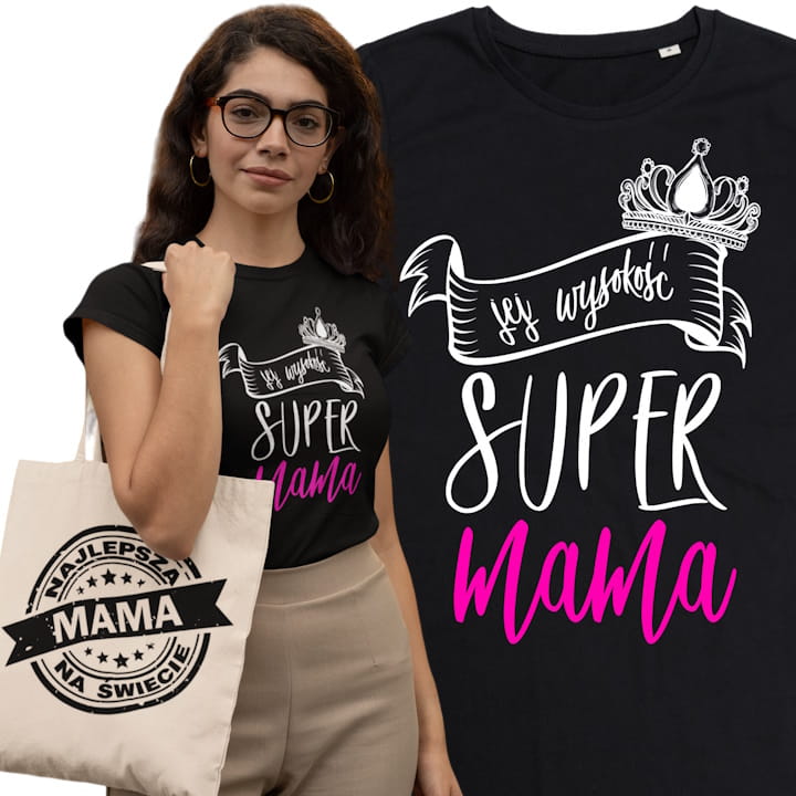 GRATIS! Do każdej zakupionej koszulki otrzymasz stylową i praktyczną torbę na zakupy z nadrukiem NAJLEPSZA MAMA NA ŚWIECIE, która stanowi świetne dopełnienie do koszulki.
