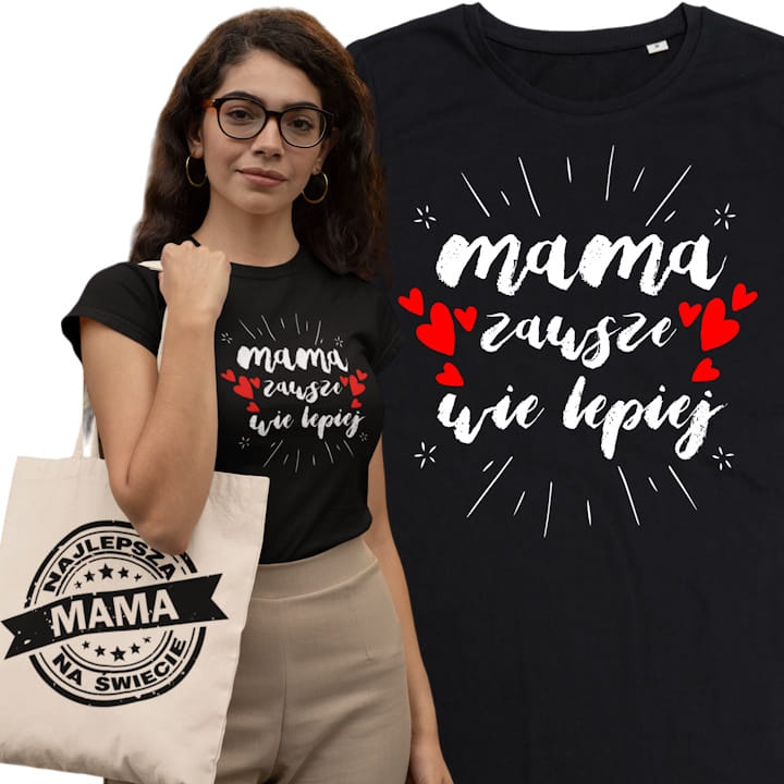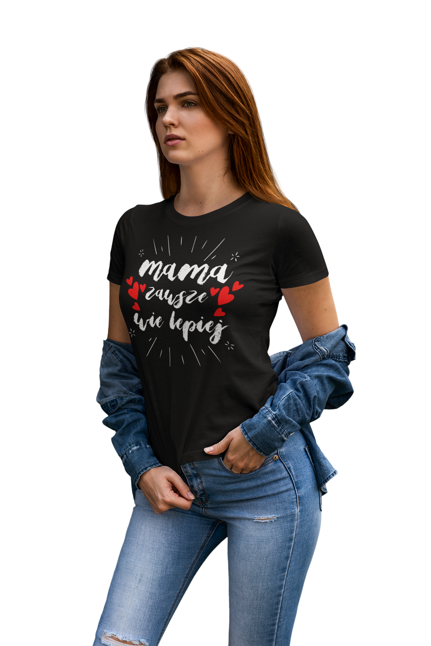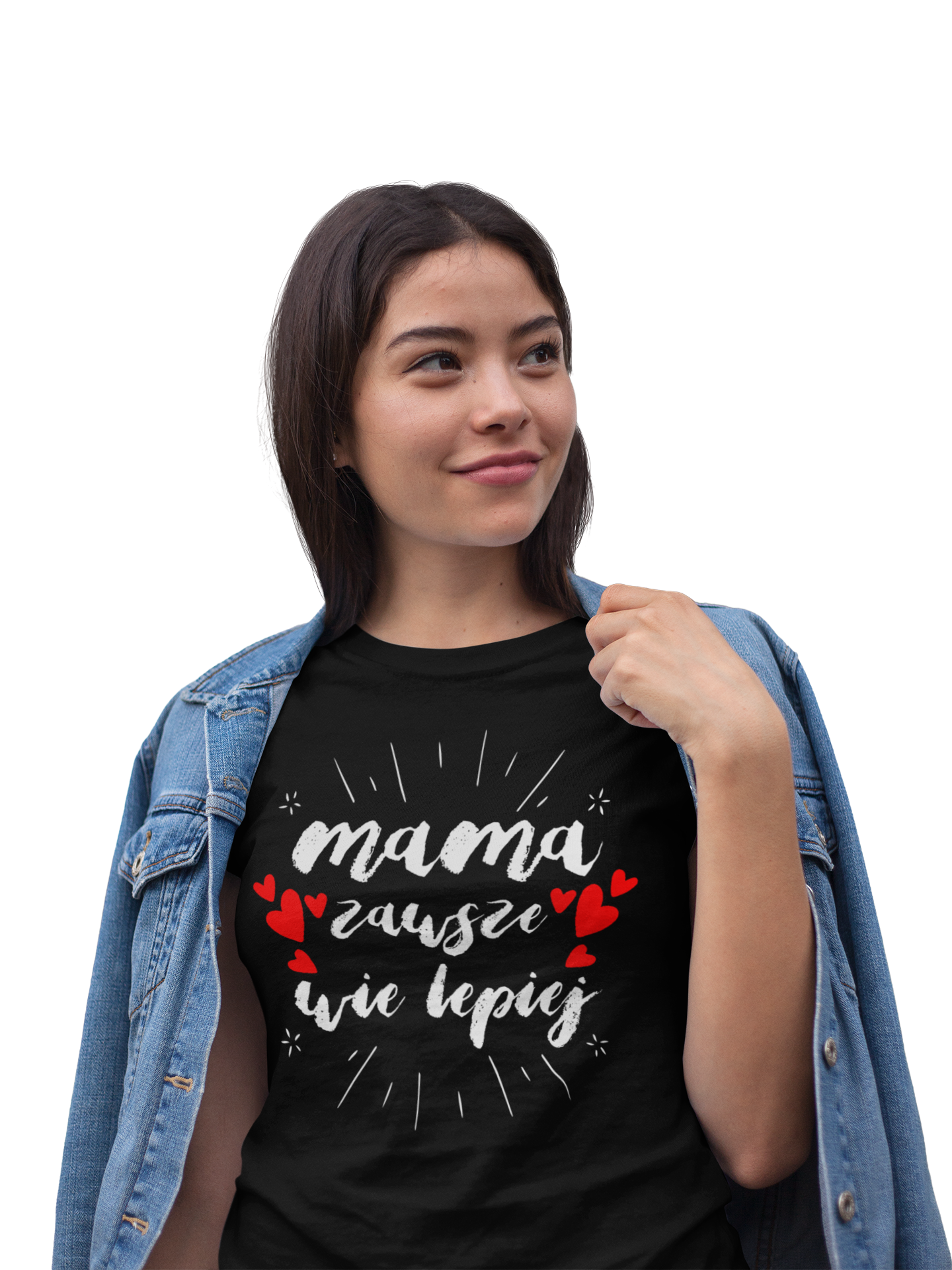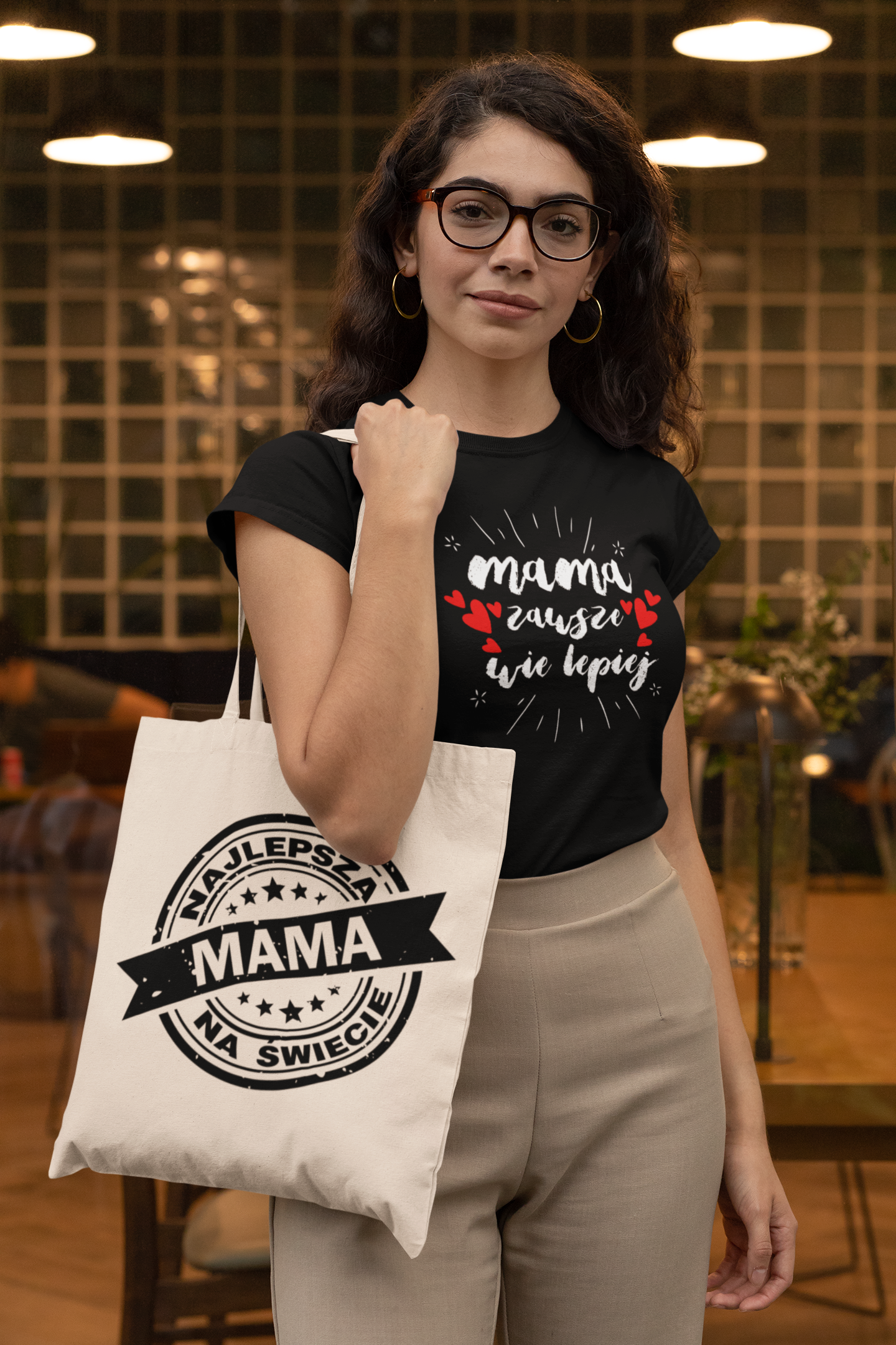 KOSZULKA DAMSKA PREZENT NA DZIEŃ MAMY MAMA ZAWSZE WIE LEPIEJ TORBA GRATIS