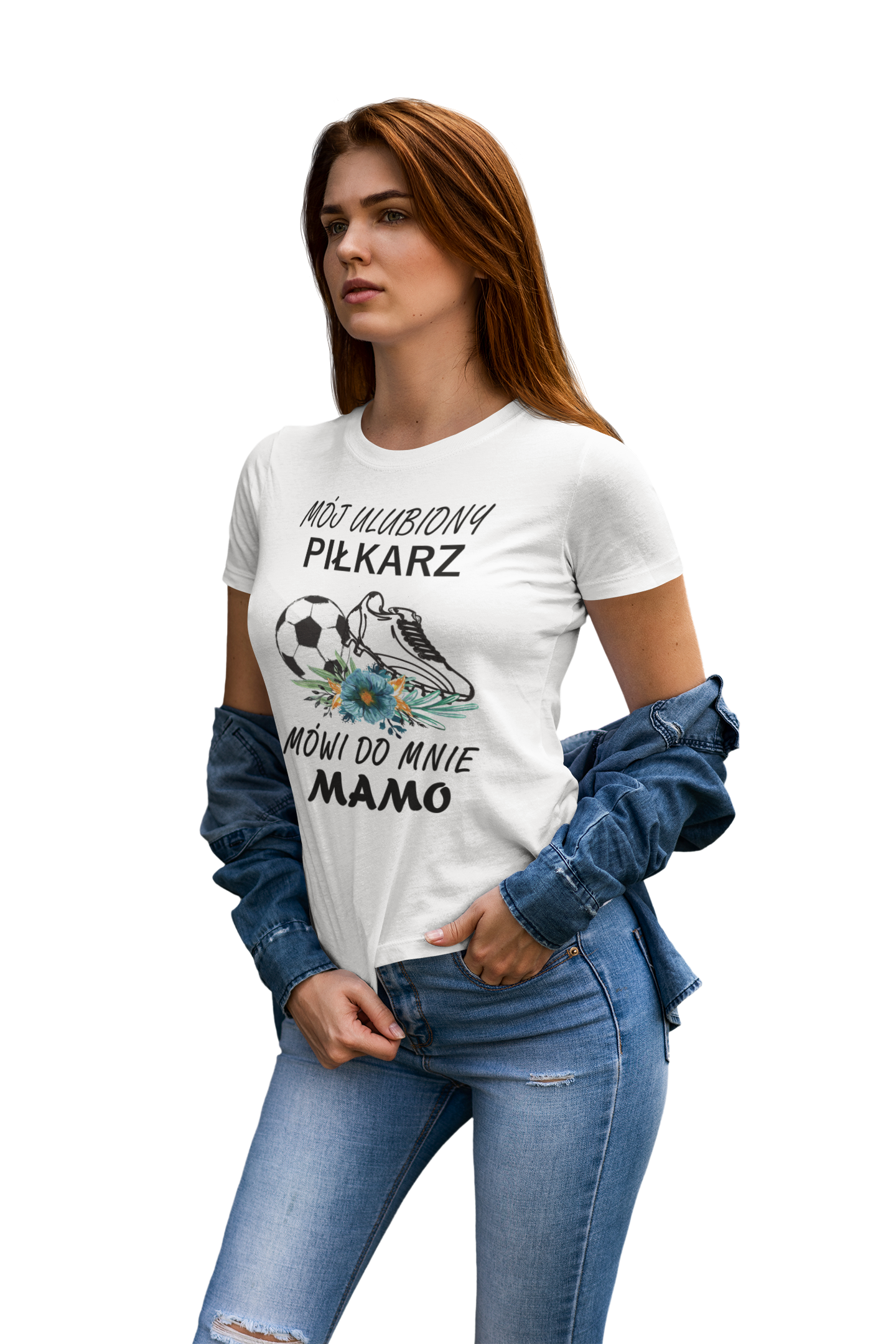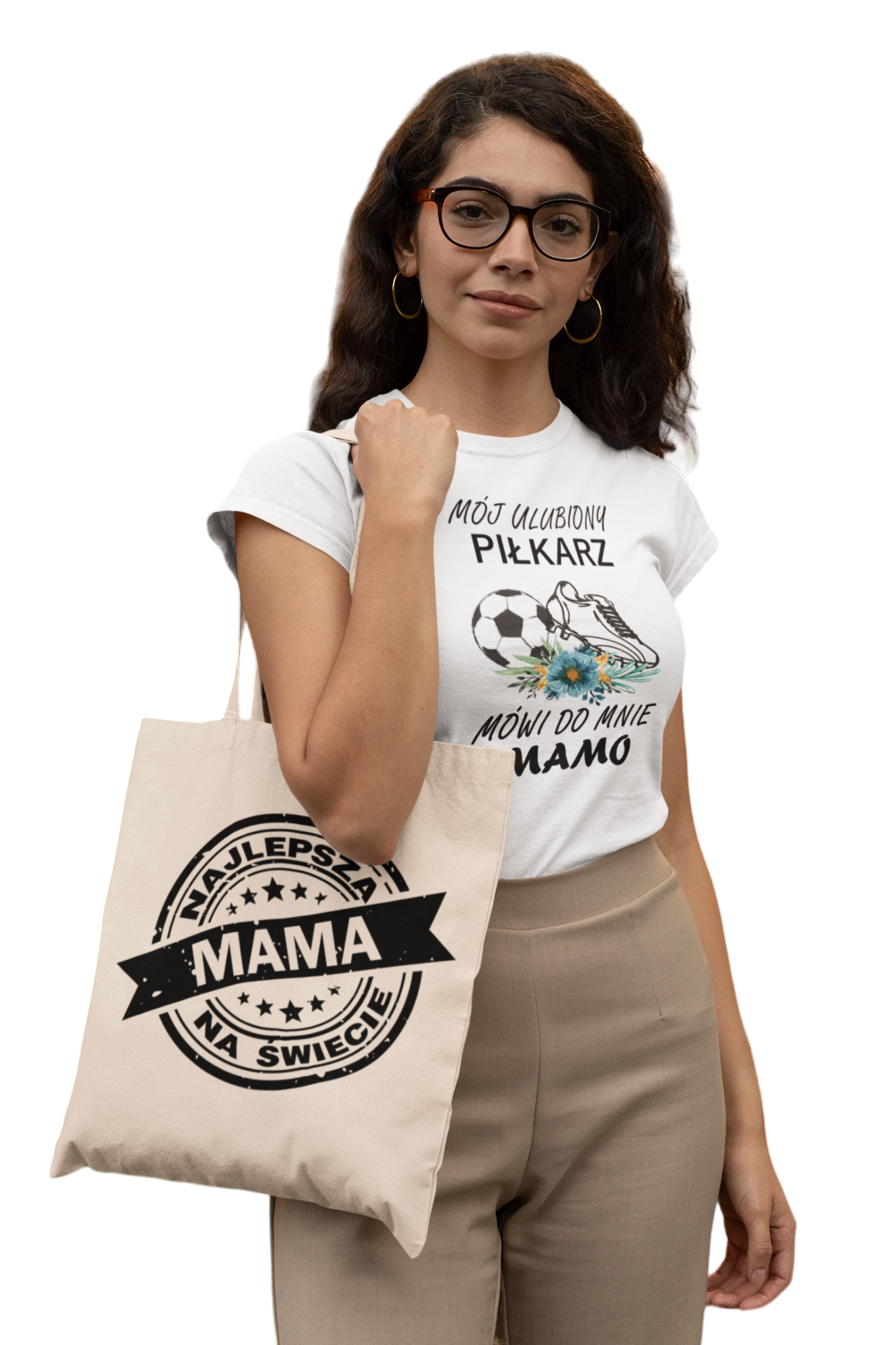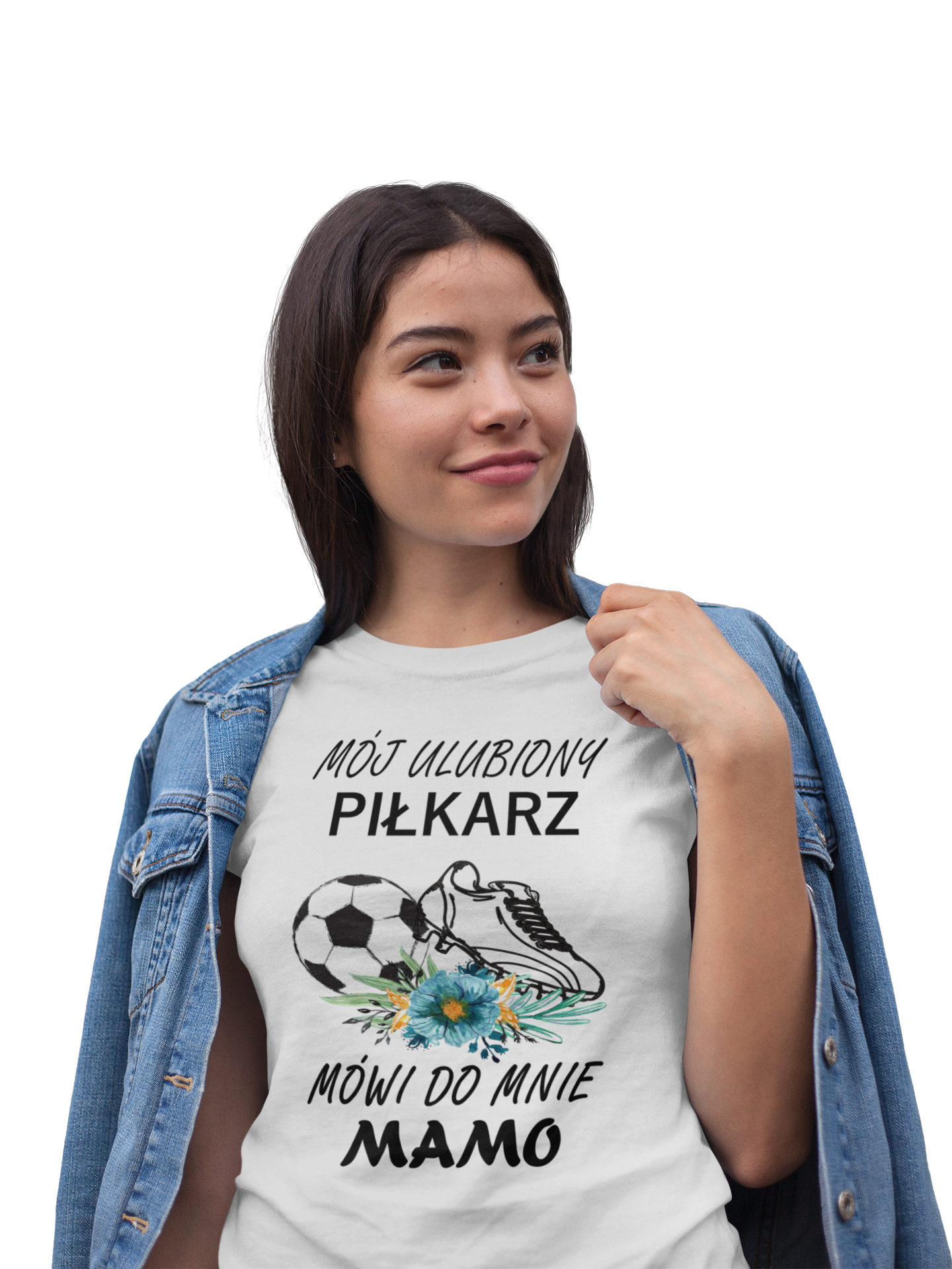 KOSZULKA DAMSKA PREZENT NA DZIEŃ MAMY ULUBIONY PIŁKARZ TORBA GRATIS
