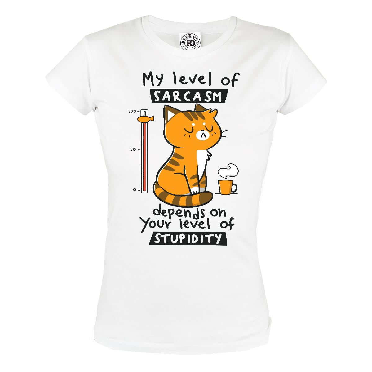 KOSZULKA DAMSKA Z KOTEM DLA MIŁOŚNICZKI KOTÓW KOCIARY MY LEVEL OF SARCASM DEPENDS ON YOUR LEVEL OF STUPIDITY
