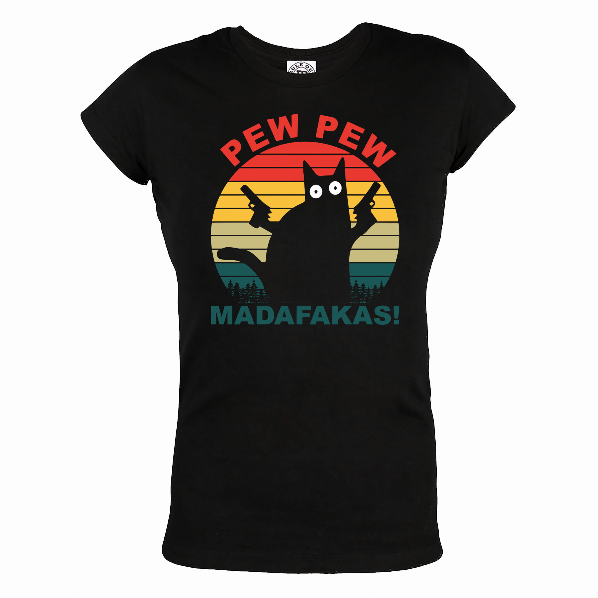 KOSZULKA DAMSKA Z KOTEM DLA MIŁOŚNICZKI KOTÓW KOCIARY PEW PEW MADAFAKAS