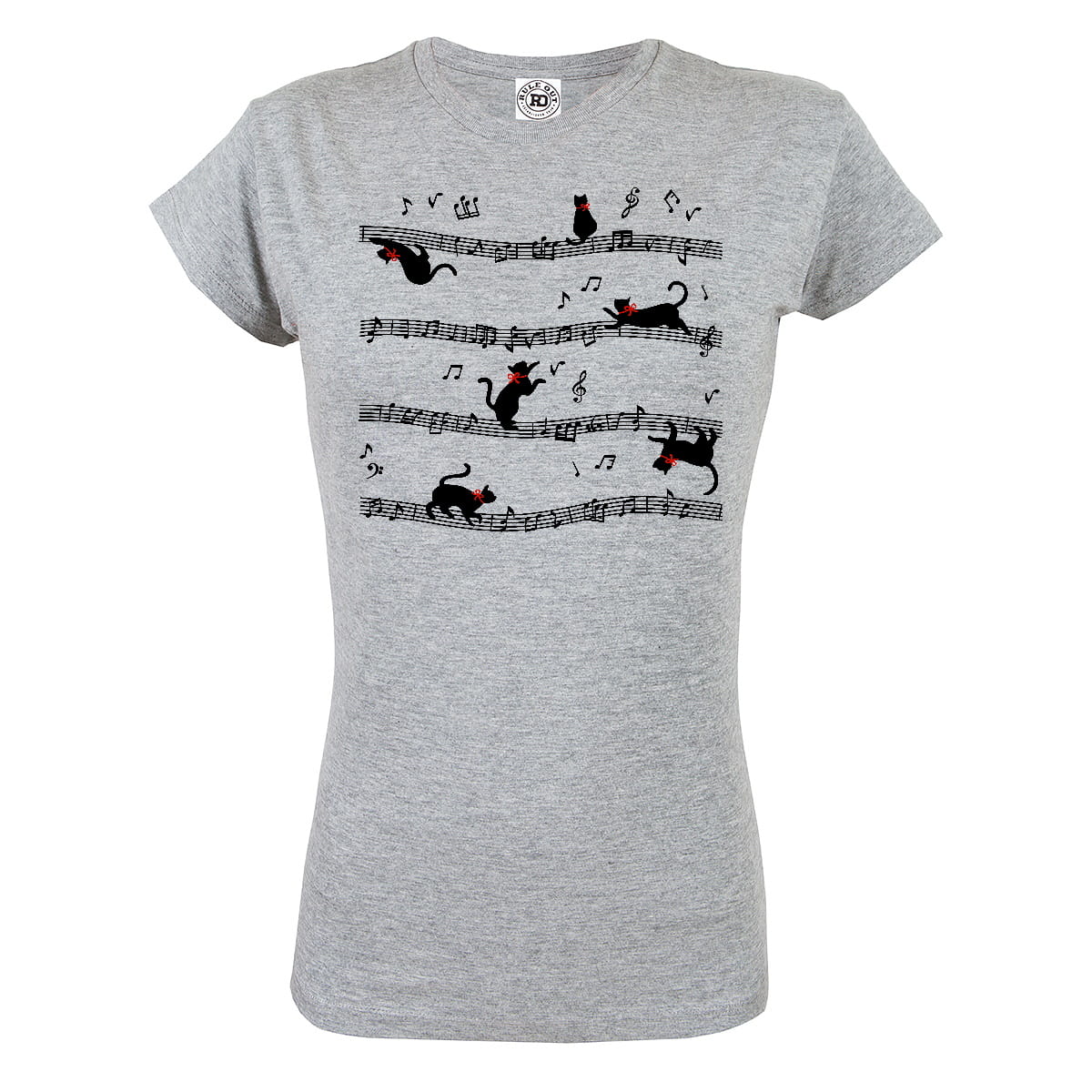 KOSZULKA DAMSKA Z KOTEM DLA MIŁOŚNICZKI KOTÓW KOCIARY PIĘCIOLINIA NUTY