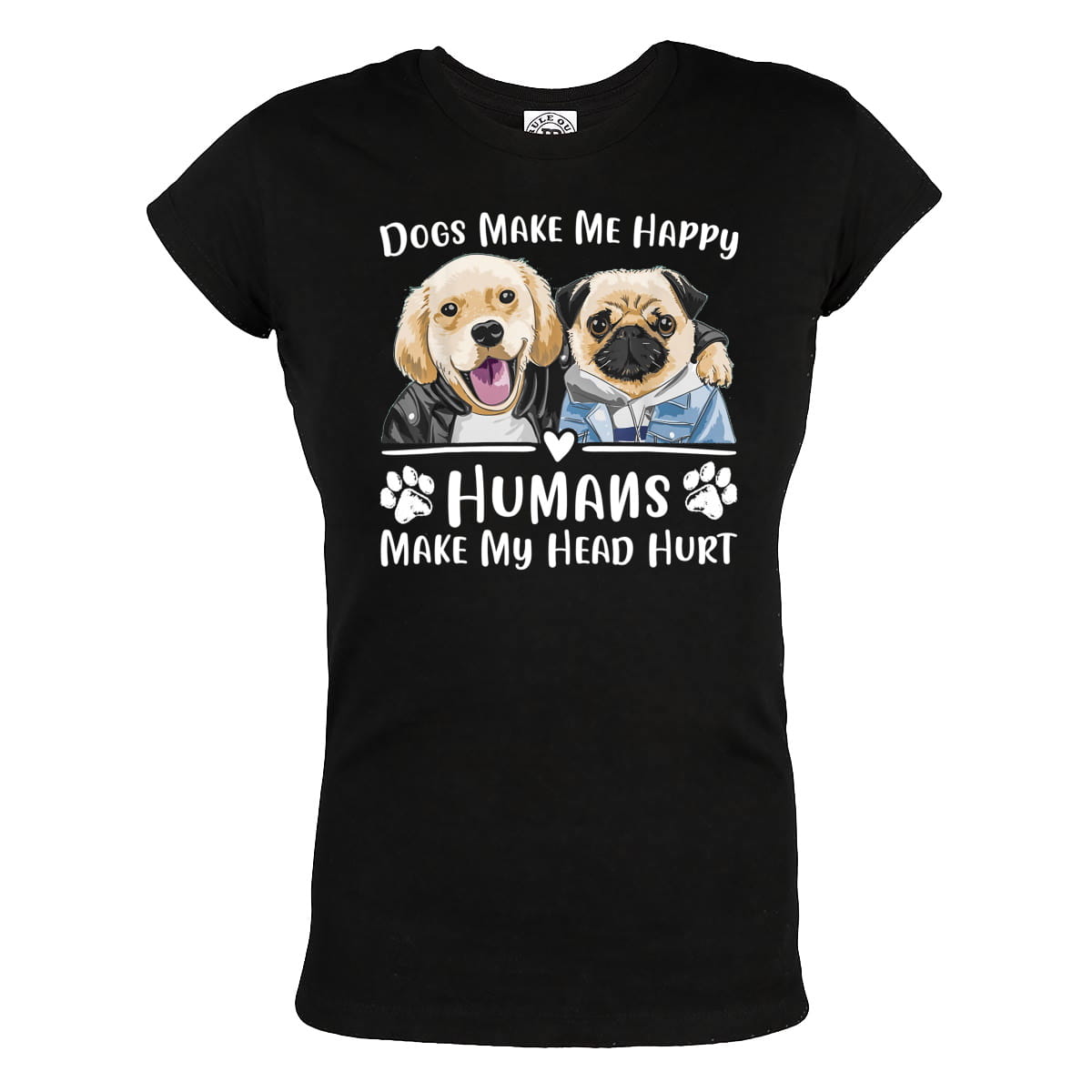 KOSZULKA DAMSKA Z PSAMI DLA WIELBICIELKI PSÓW PSI PRZYJACIELE DOGS MAKE ME HAPPY HUMANS MAKE MY HEAD HURT