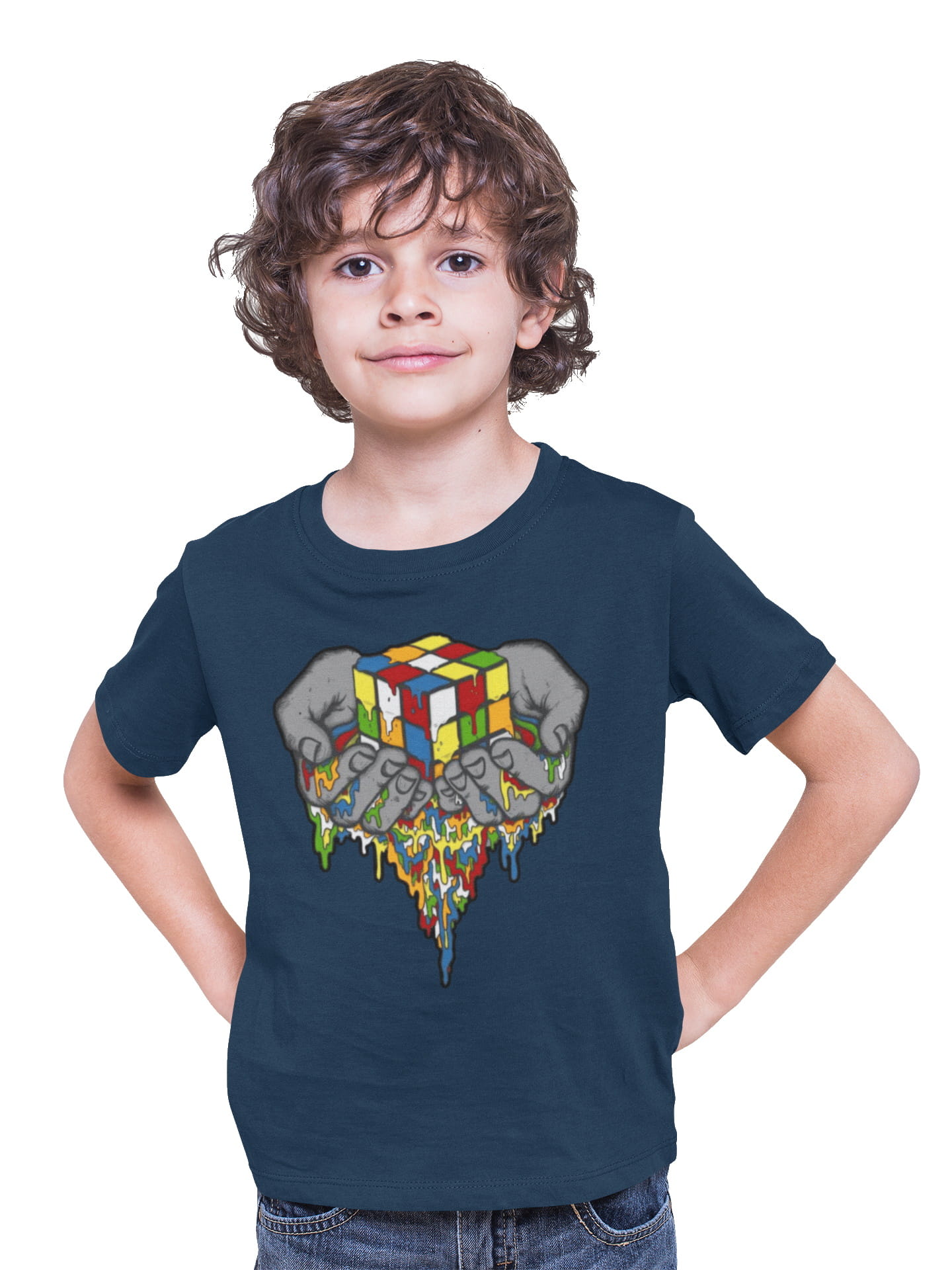 Dziecięca koszulka z nadrukiem popularnej zabawki logicznej - kostki rubika.