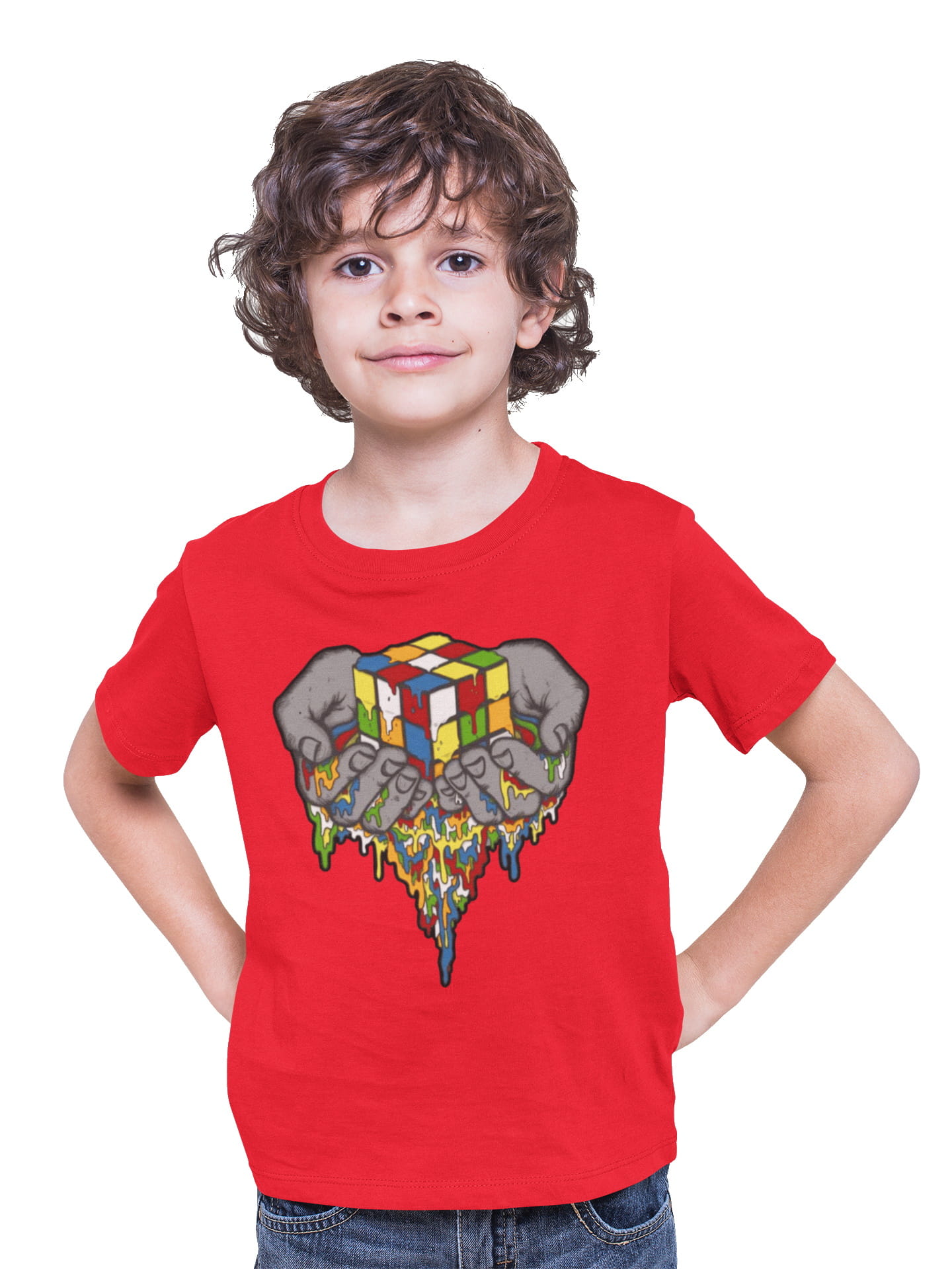 Dziecięca koszulka z nadrukiem popularnej zabawki logicznej - kostki rubika.