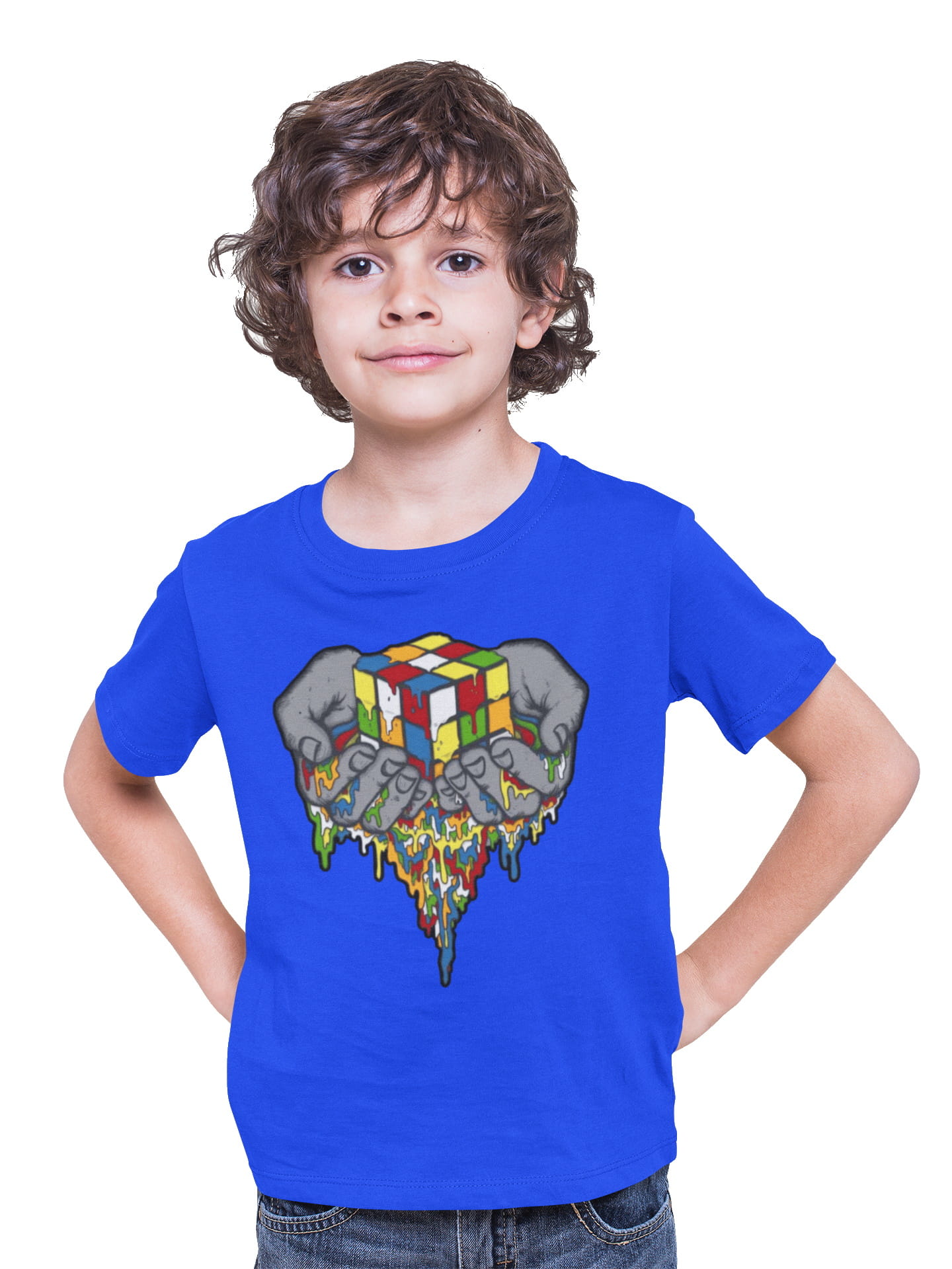 Dziecięca koszulka z nadrukiem popularnej zabawki logicznej - kostki rubika.