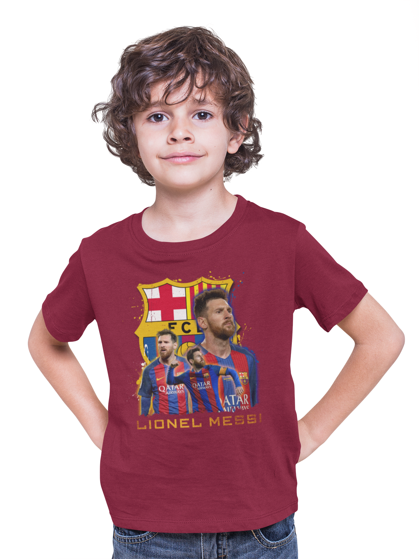 Unikalna koszulka dla kibica FC Barcelony. Wykonana z miękkiej i przewiewnej bawełny, zapewnia wygodę i swobodę ruchów podczas zabawy czy kibicowania ulubionej drużynie. Nadruk z logo FC Barcelony i kolorami drużyny sprawia, że koszulka jest idealna na każdą okazję – od meczów po codzienne zabawy.