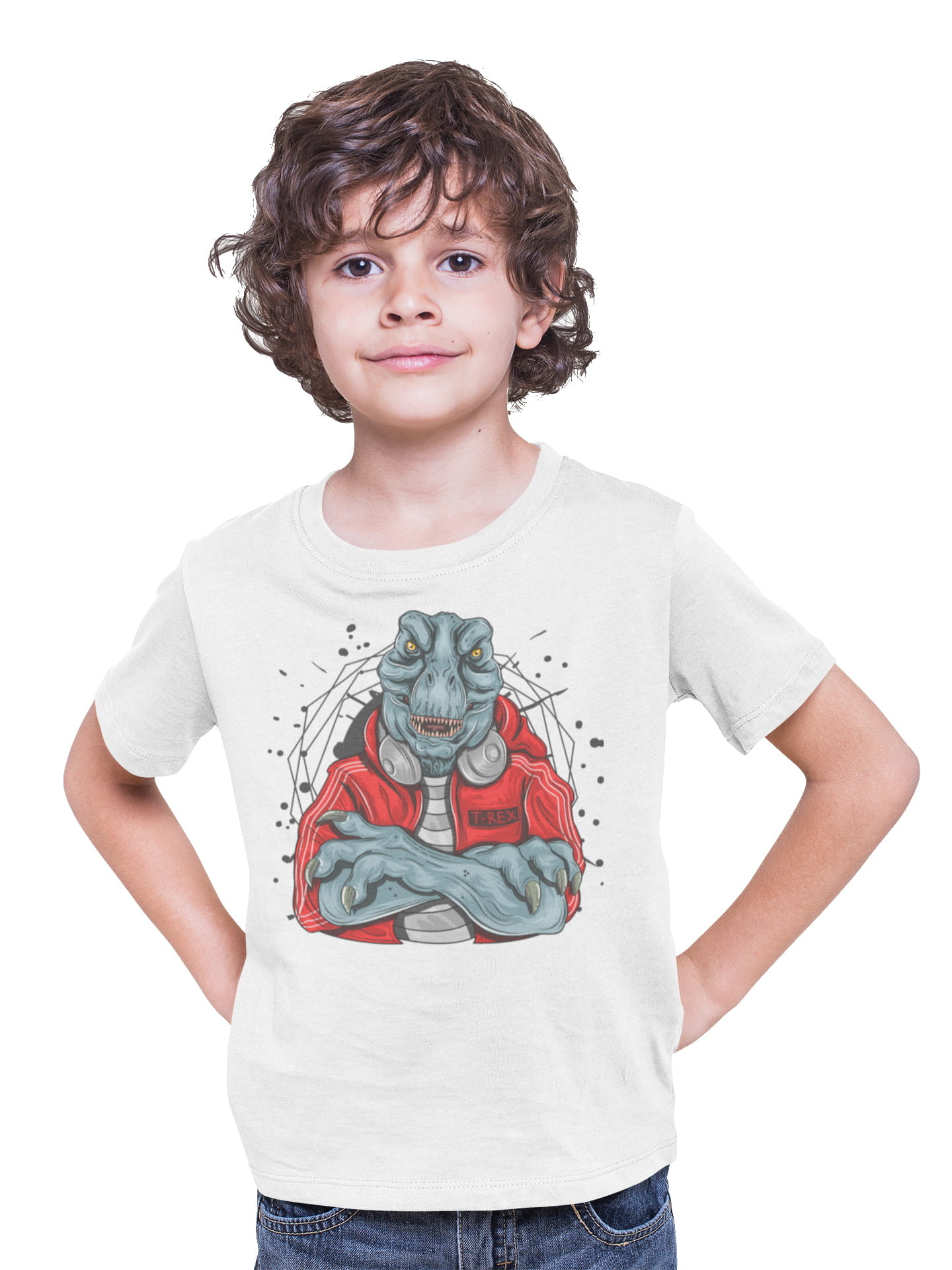 KOSZULKA DZIECIĘCA MUZYCZNA DINOZAUR T-REX SŁUCHAWKI