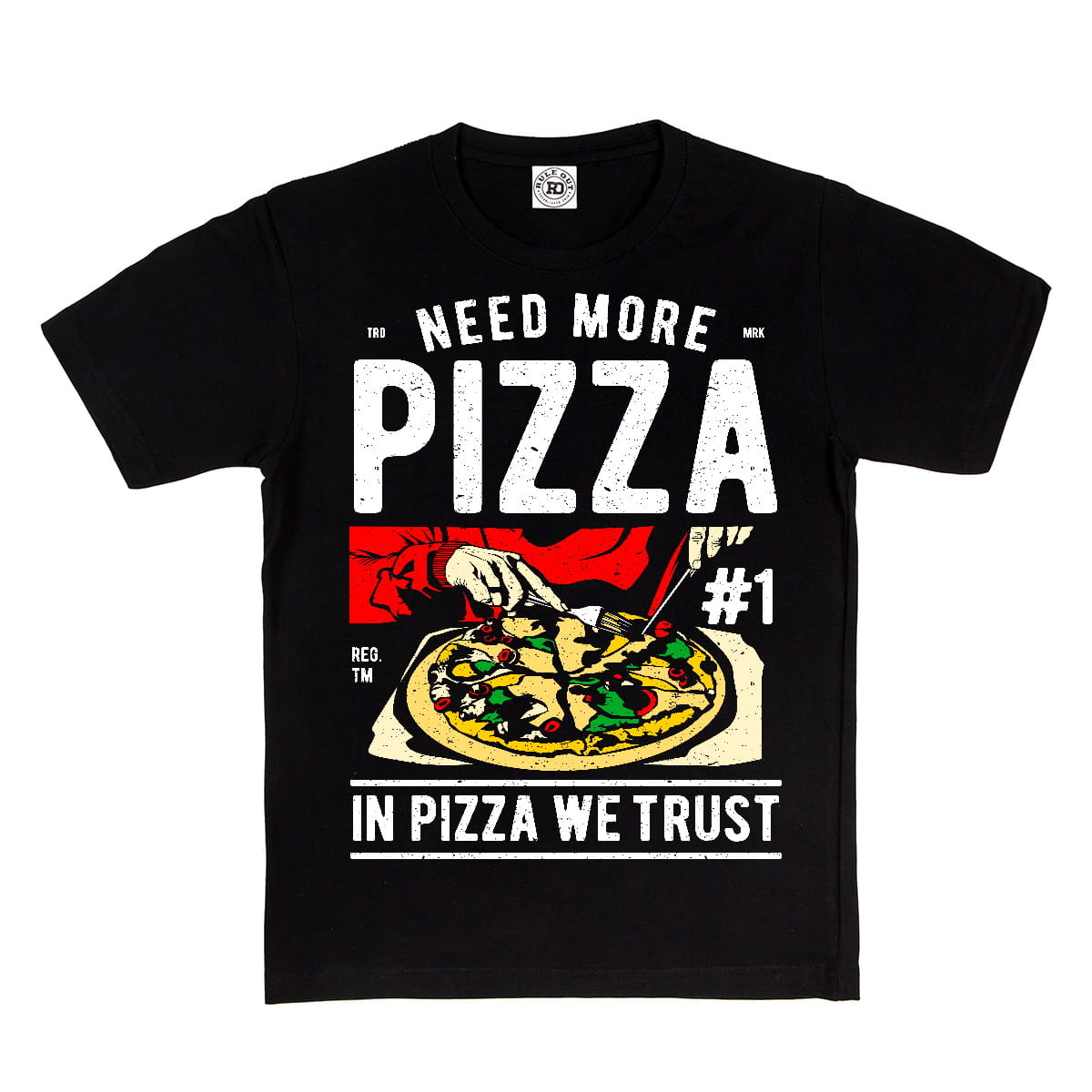 KOSZULKA DZIECIĘCA Z ZABAWNYM NADRUKIEM CASUAL NA PREZENT WIELBICIEL PIZZY NEED MORE PIZZA