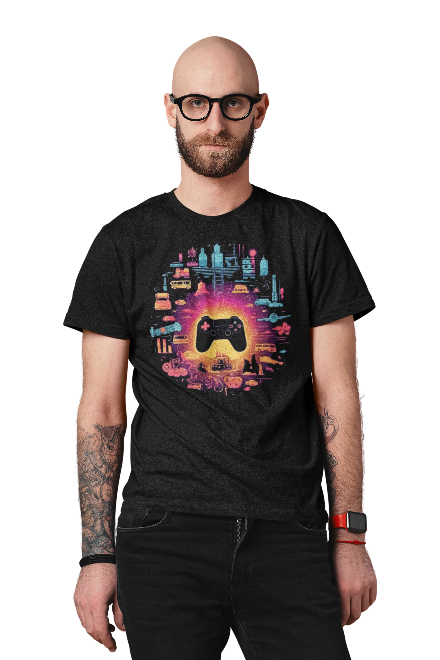 Koszulka męska dla wielbiciela gier na konsoli. Pokaż światu swoje zamiłowanie do wirtualnych światów, ekranów komputerów i niezapomnianych przygód, jakie oferują gry wideo.