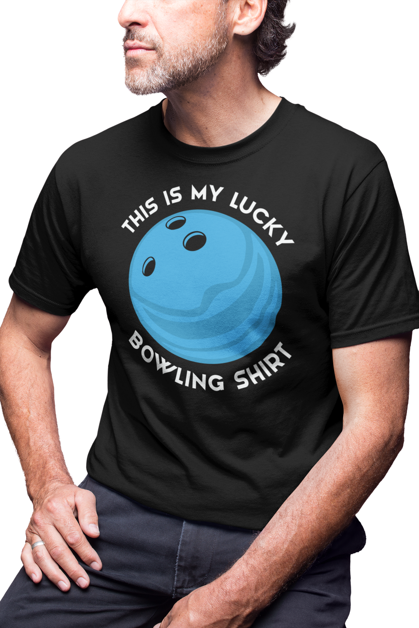 KOSZULKA MĘSKA BOWLINGOWA SZCZĘŚLIWA KOSZULKA BOWLING NA KRĘGLE KRÓL BOWLINGU THIS IS MY LUCKY BOWLING SHIRT