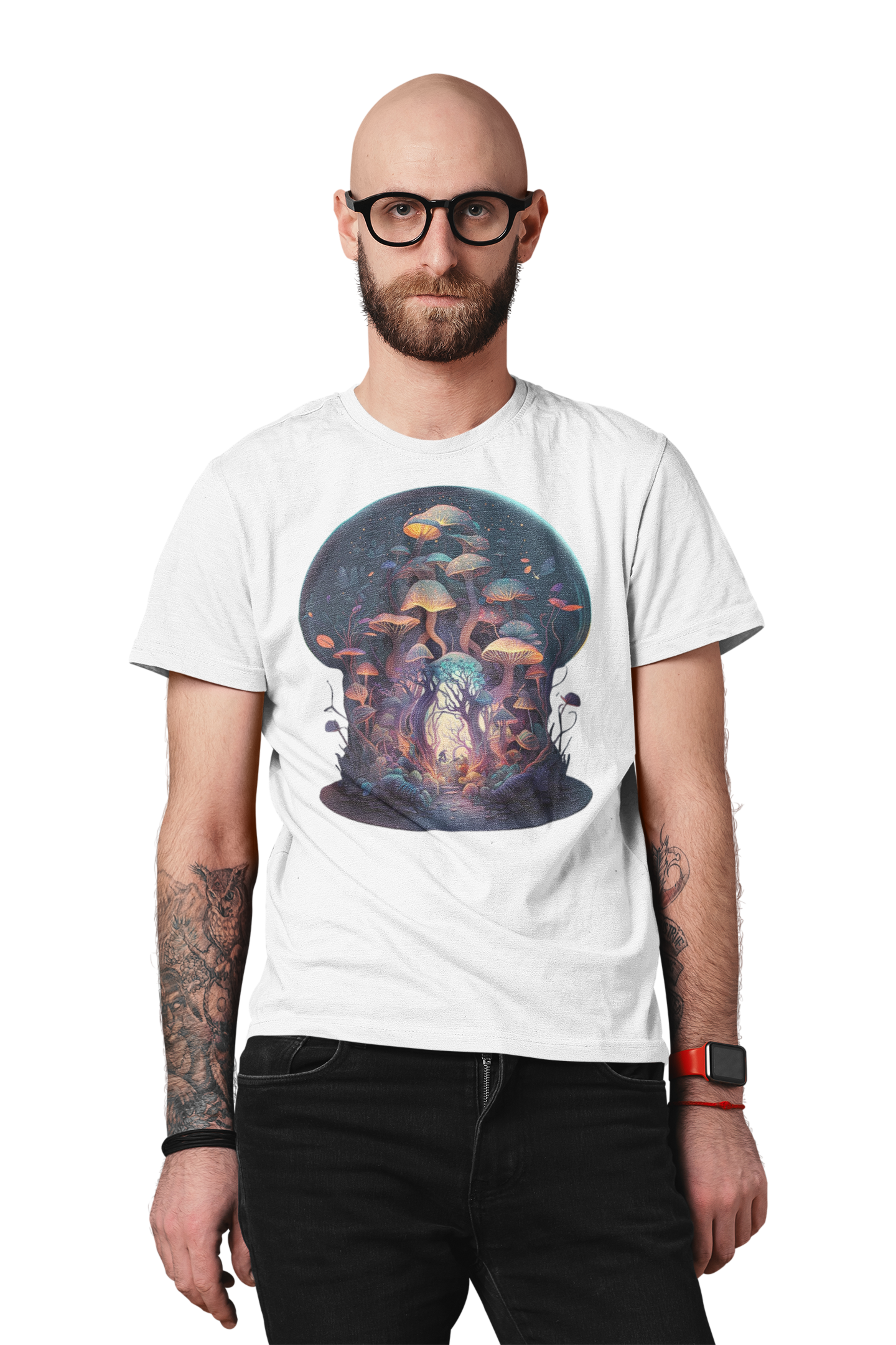 Koszulka męska z nadrukiem przedstawiającym grzybki halucynki dla osób interesujących się psychodelicznymi doświadczeniami. Fantastyczny dodatek do Twojej kolekcji odzieży z unikalnymi motywami.