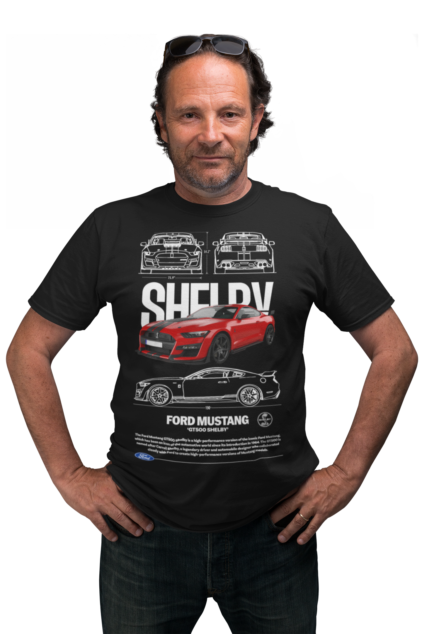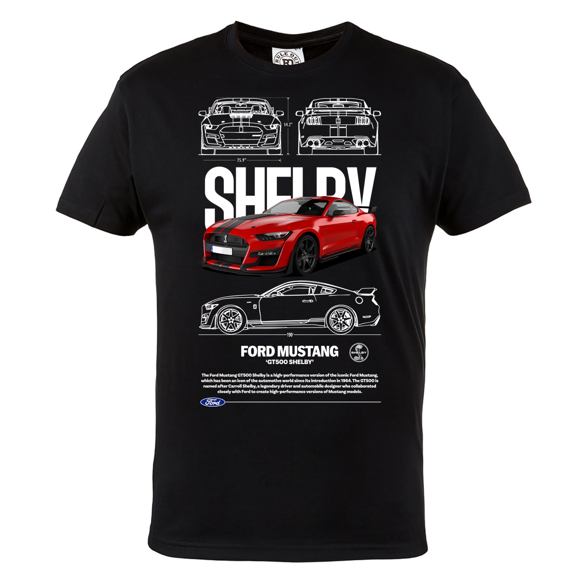 KOSZULKA MĘSKA MOTORYZACYJNA CZERWONY FORD MUSTANG GT500 SHELBY