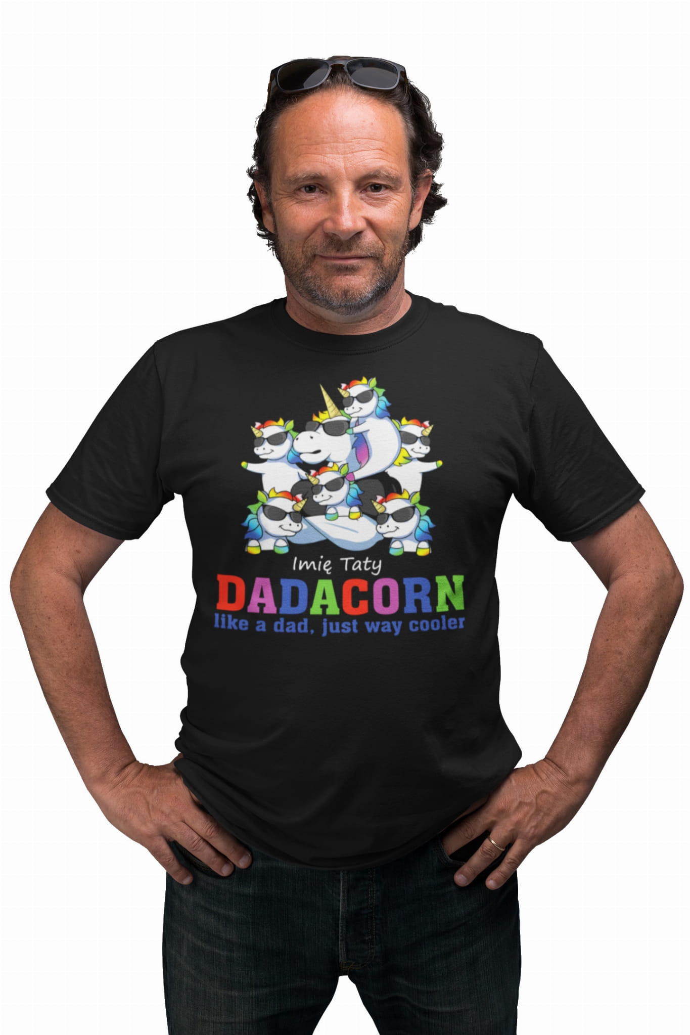 KOSZULKA MĘSKA PERSONALIZOWANA PREZENT NA DZIEŃ OJCA DLA TATY PODAJ IMIĘ JEDNOROŻEC DADACORN 6 DZIECI